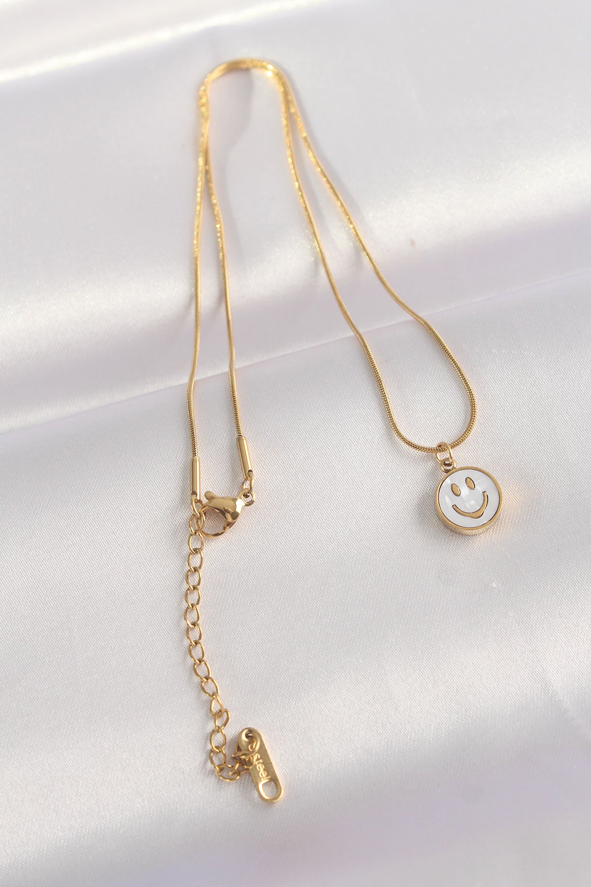 316L Çelik Zincir Altın Renk Mermer Desenli Minimal Smile Kolye