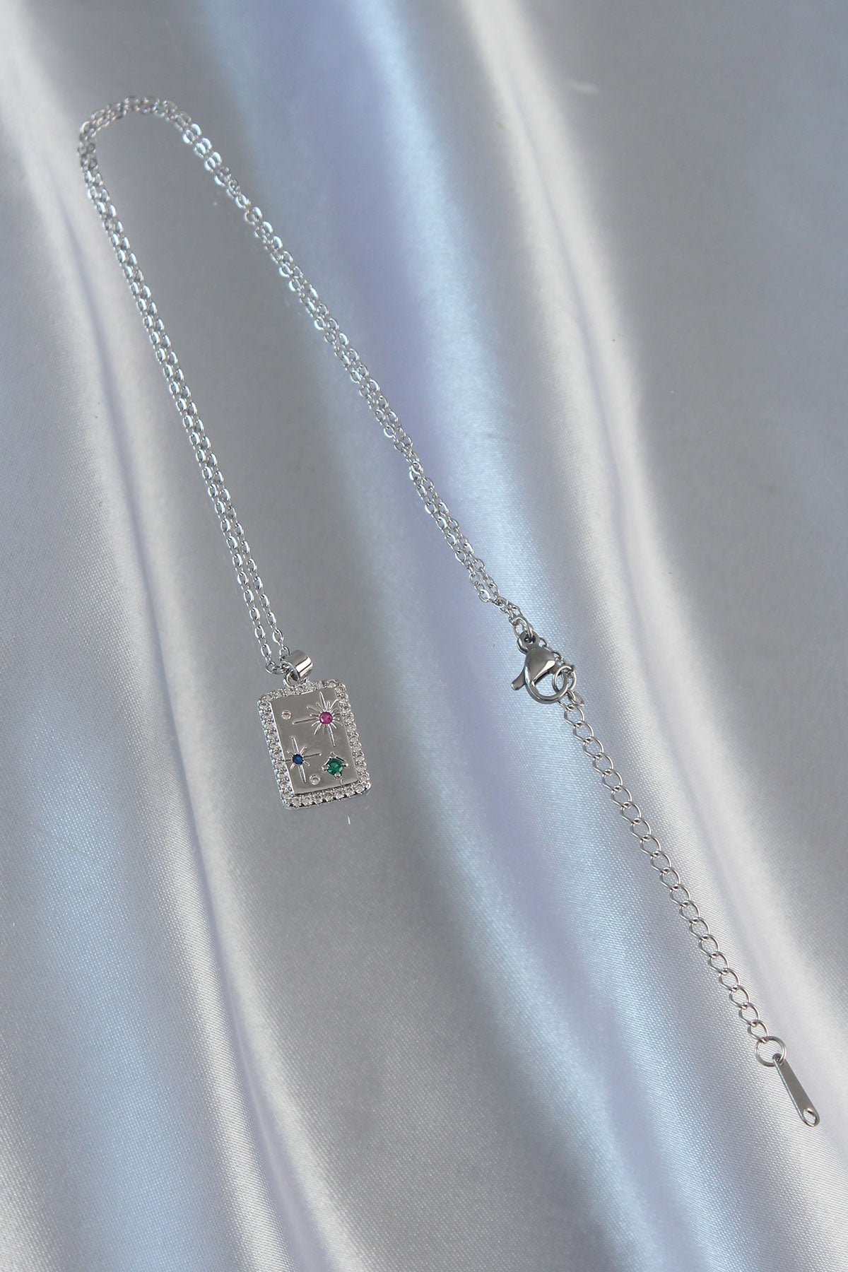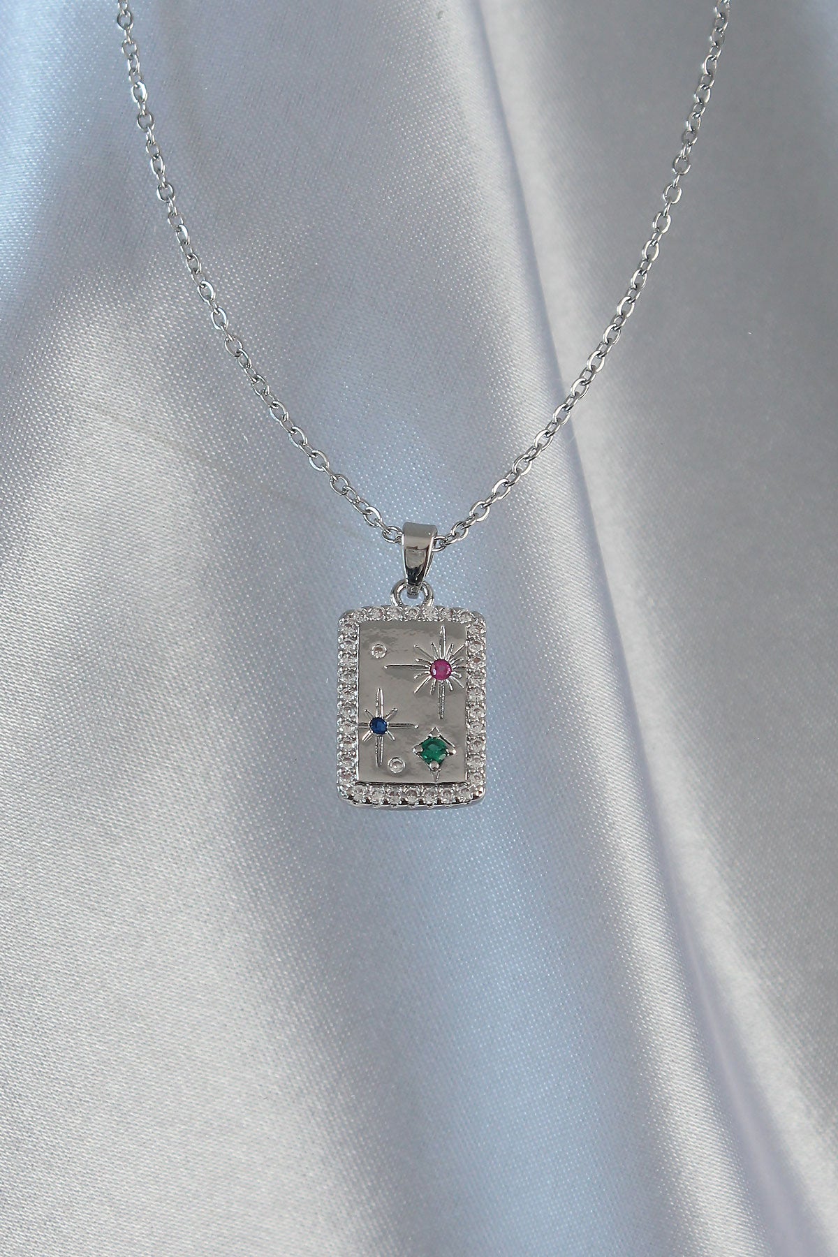 316L Çelik Zincir Gümüş Renk Renkli Zirkon Taşlı Vintage Kolye
