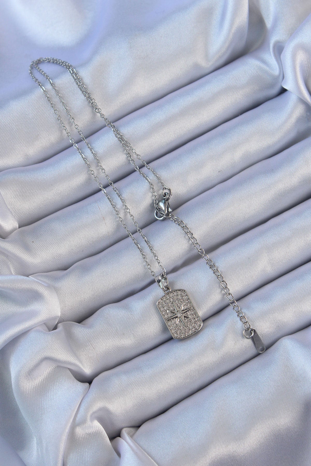316L Çelik Zincir Gümüş Renk Zirkon Taşlı Kutup Yıldızlı Vintage Kolye