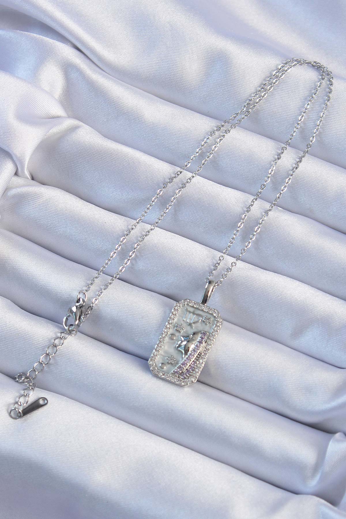 316L Çelik Zincir Gümüş Renk Zirkon Taşlı Yüz Figürlü Tarot Kolye