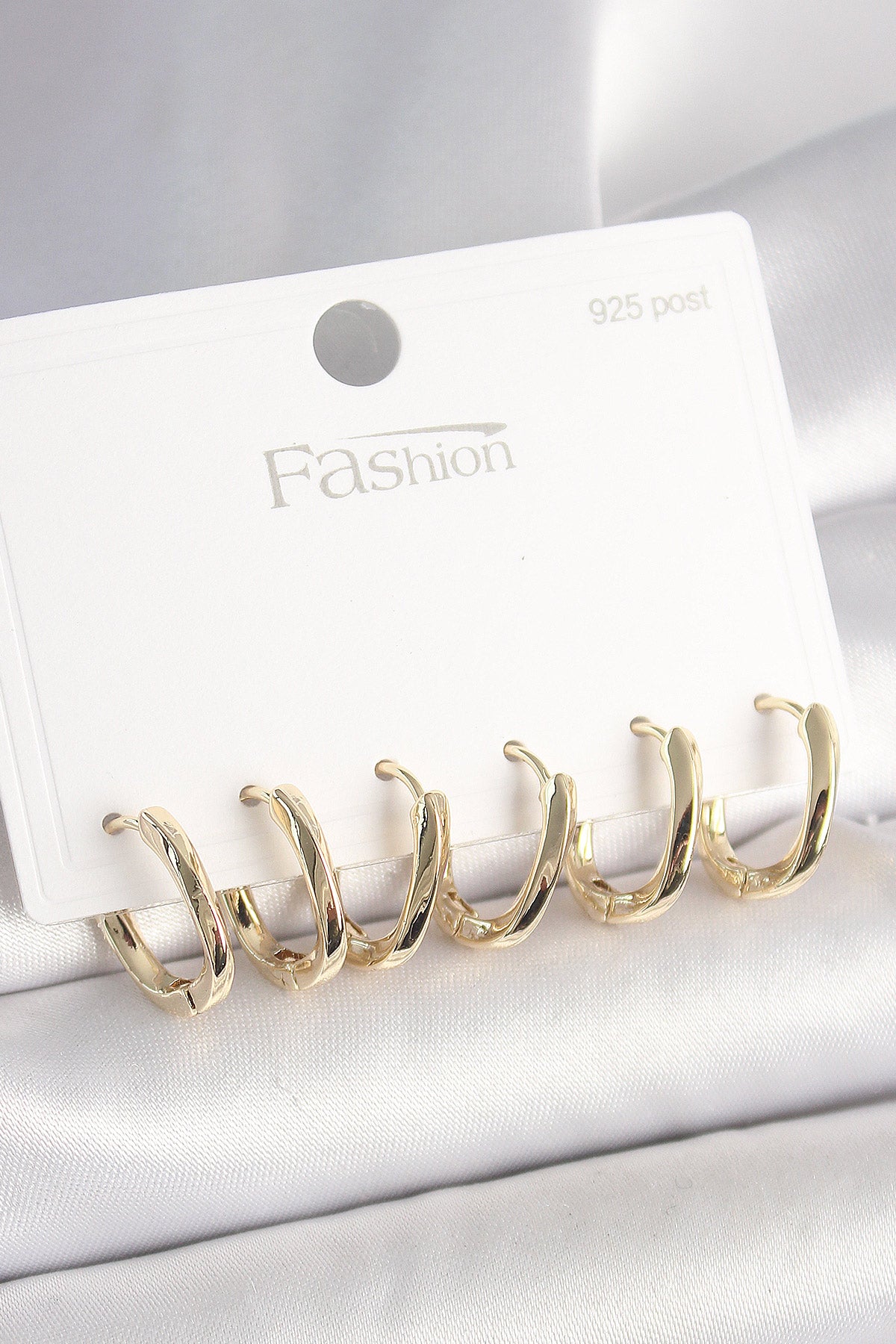 925 Ayar Gümüş Çivi Pirinç Gold Renk Oval Halka Model Kadın Küpe Seti
