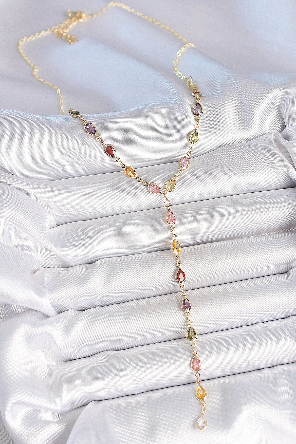 Gold Karışık Renk Zirkon Taşlı Y Pirinç Kolye