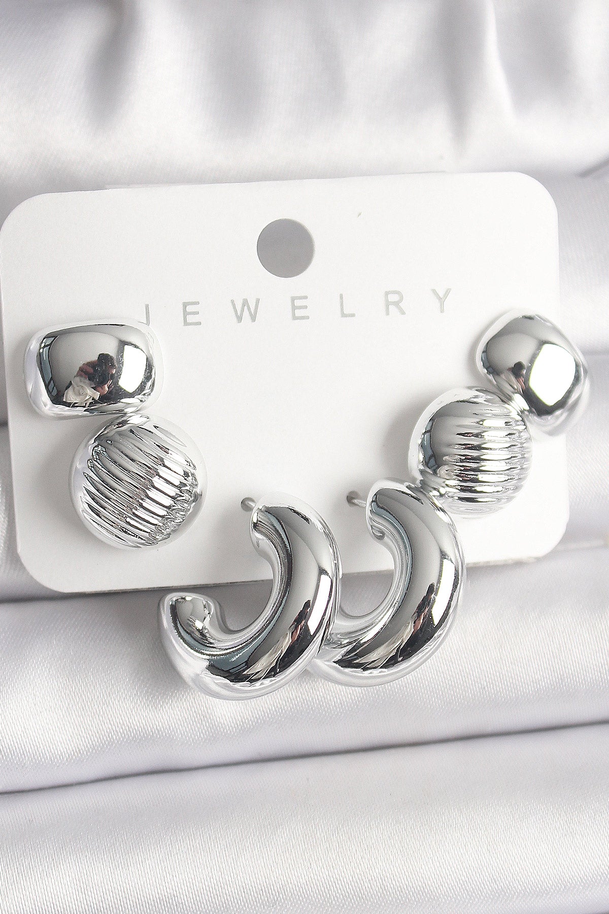 Gümüş Renk İşlemeli Daire Halka Model CCB Platik Kadın Küpe Seti