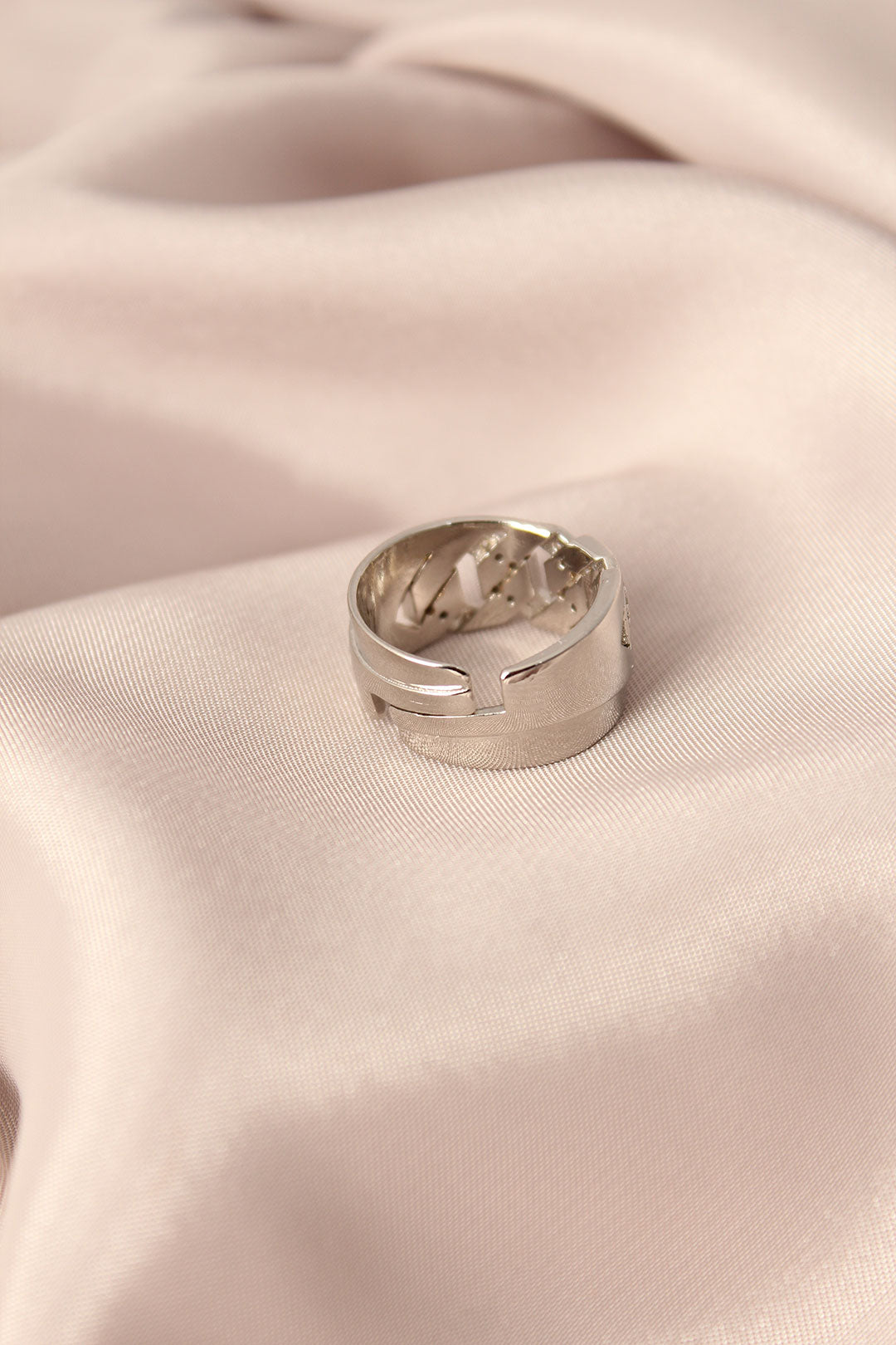 Gümüş Renk Metal Zirkon Taşlı Ayarlanabilir Kadın Yüzük