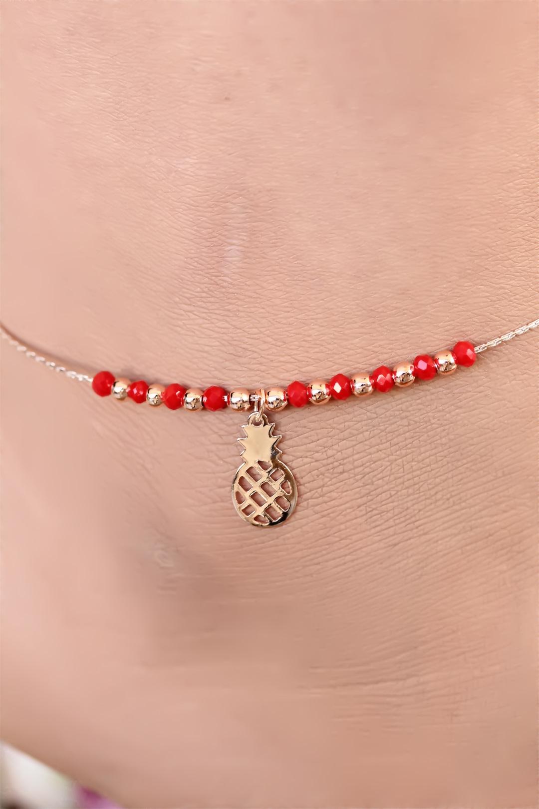 Kırmızı Renk Miyuki Taşlı Ananas Figürlü Metal Hal Hal