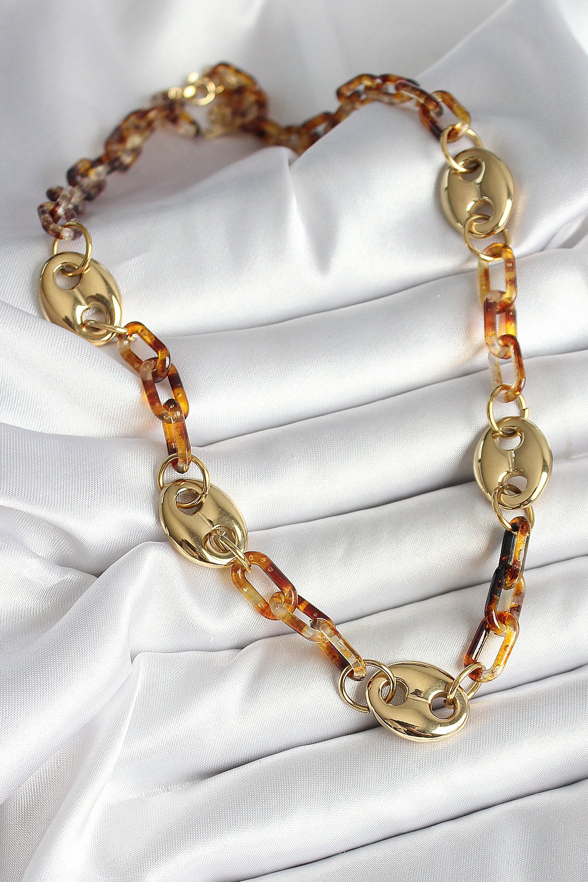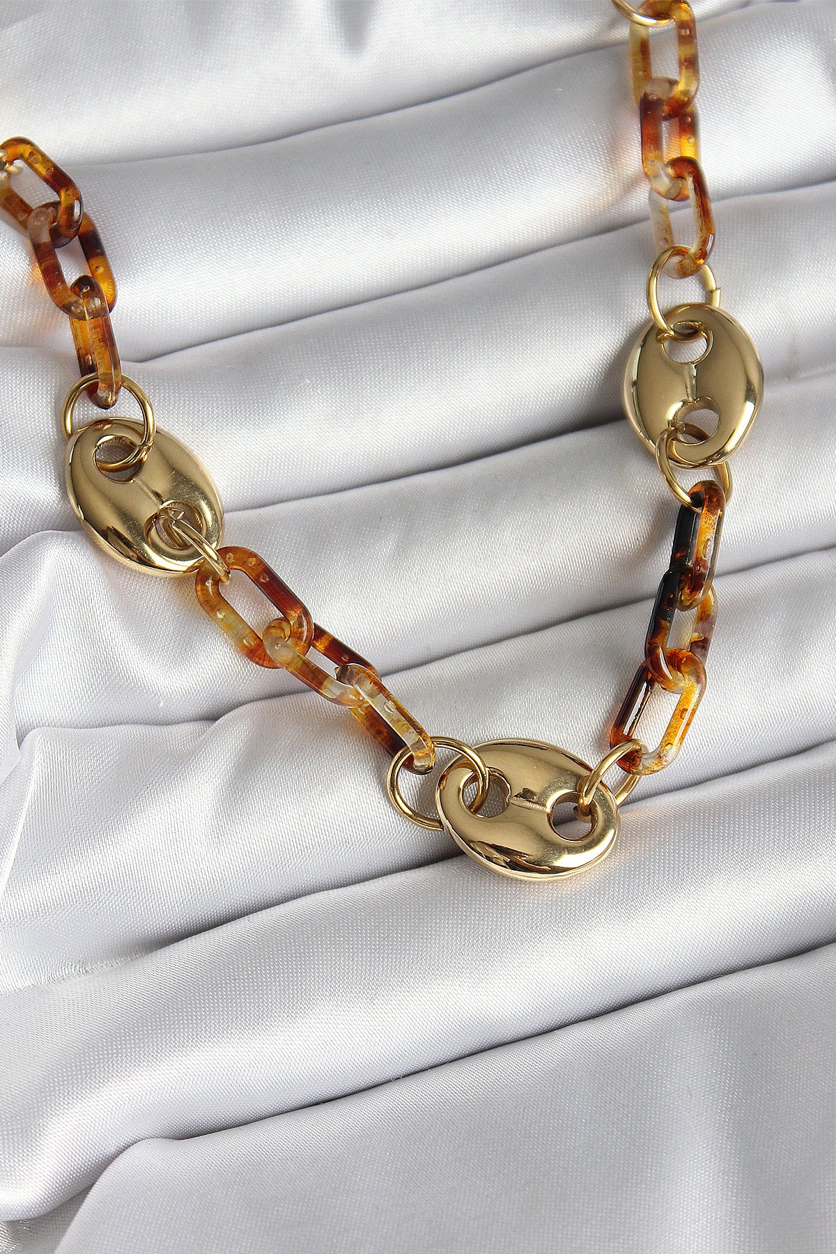 Leopar Desenli Mika Gold Renk Zincir Kadın Kolye