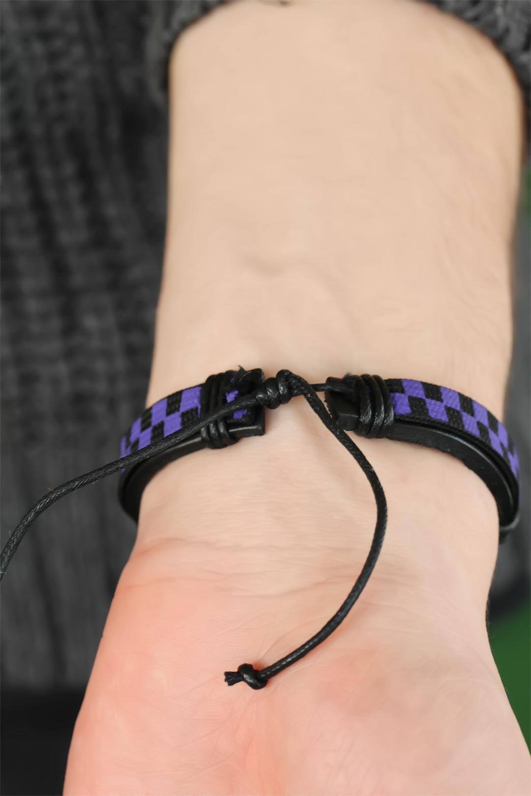 Kendinizi Mor Renk Damalı Deri Erkek Bileklik ile her zaman şık göreceksiniz
