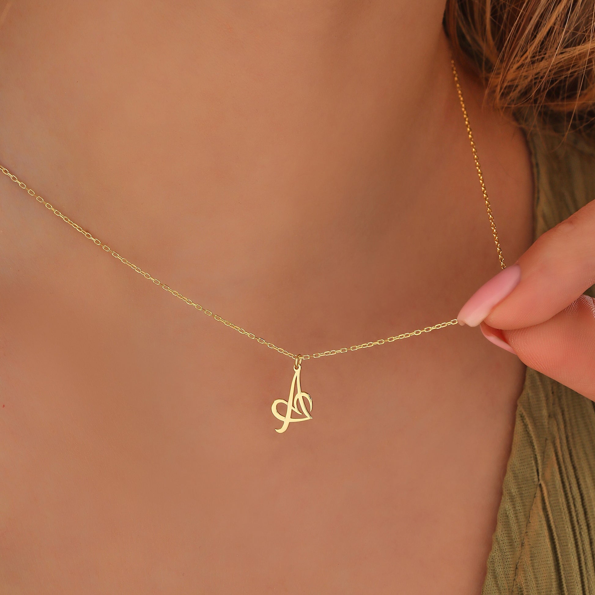 Gold or Silver Personalized Initial Necklace, Custom Letter Necklace, Personalized Name Jewelry, Initial Heart Pendant, Christmas Gifts