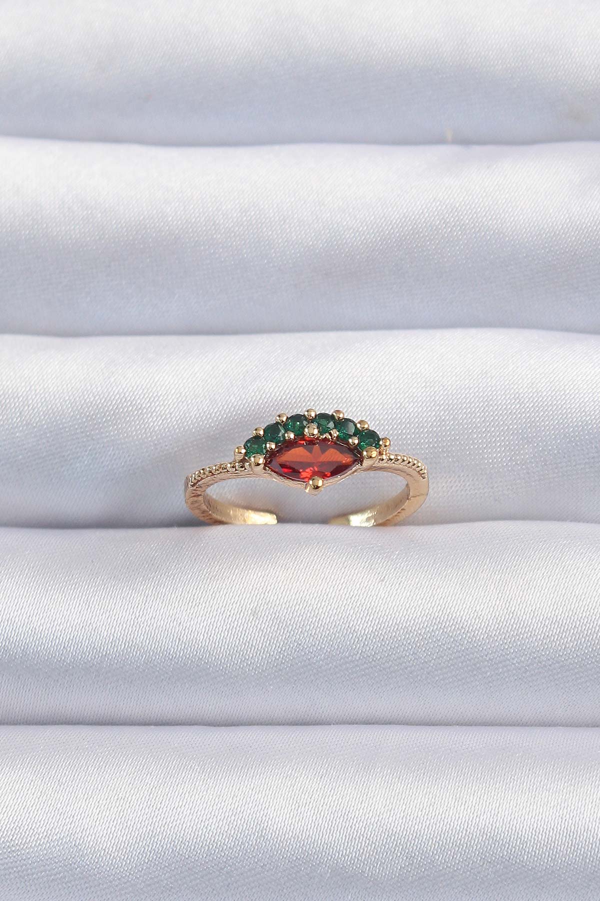 Pirinç Altın Renk Renkli Zirkon Taşlı Ayarlanabilir Karpuz Model Yüzük