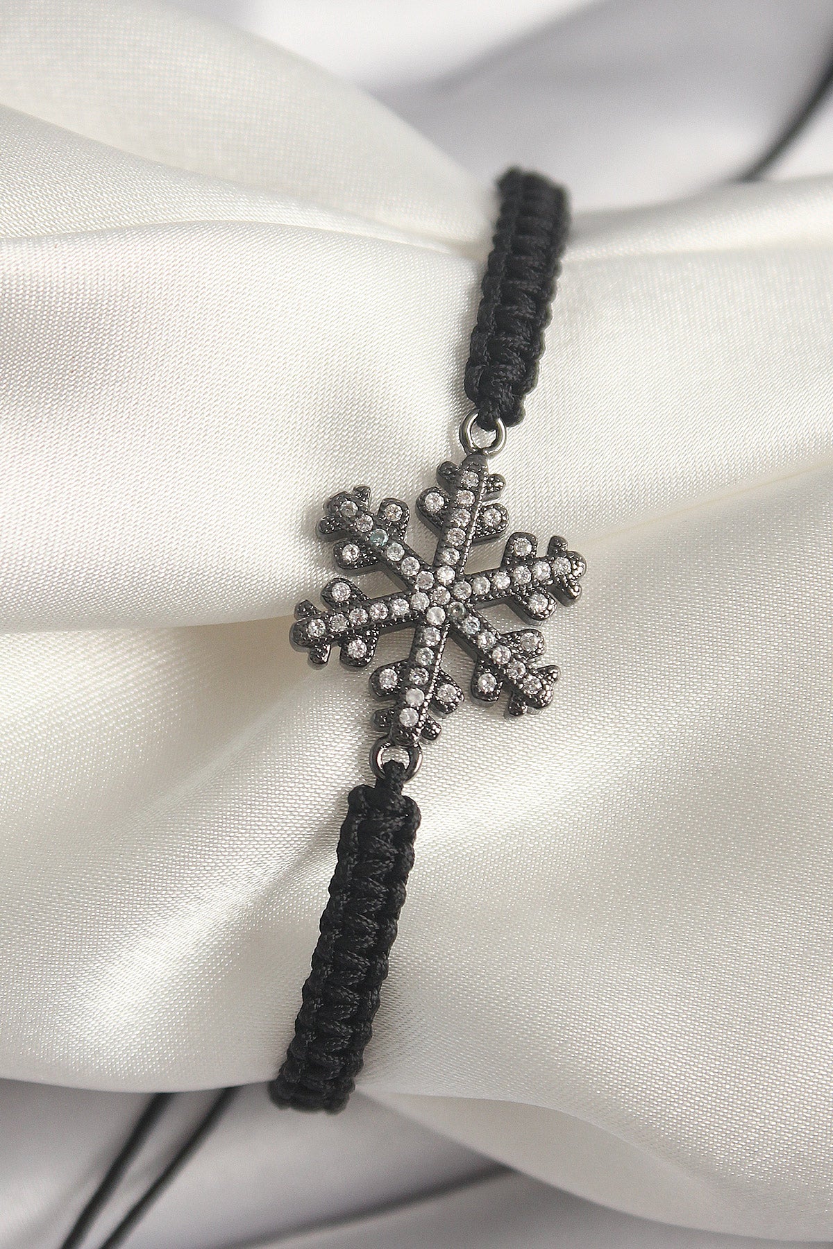 Pirinç Füme Renk Zirkon Taşlı Kar Tanesi Figür Makrome Asansörlü Model Kadın Bileklik