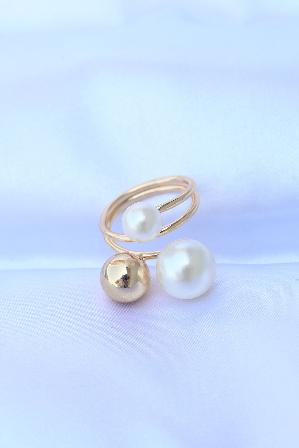Pirinç Gold Renk Ayarlanabilir İnci Taşlı Yüzük
