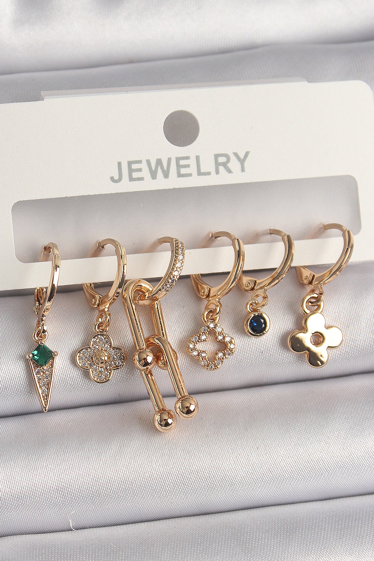Pirinç Gold Renk Çoklu Figür Kadın Küpe Seti