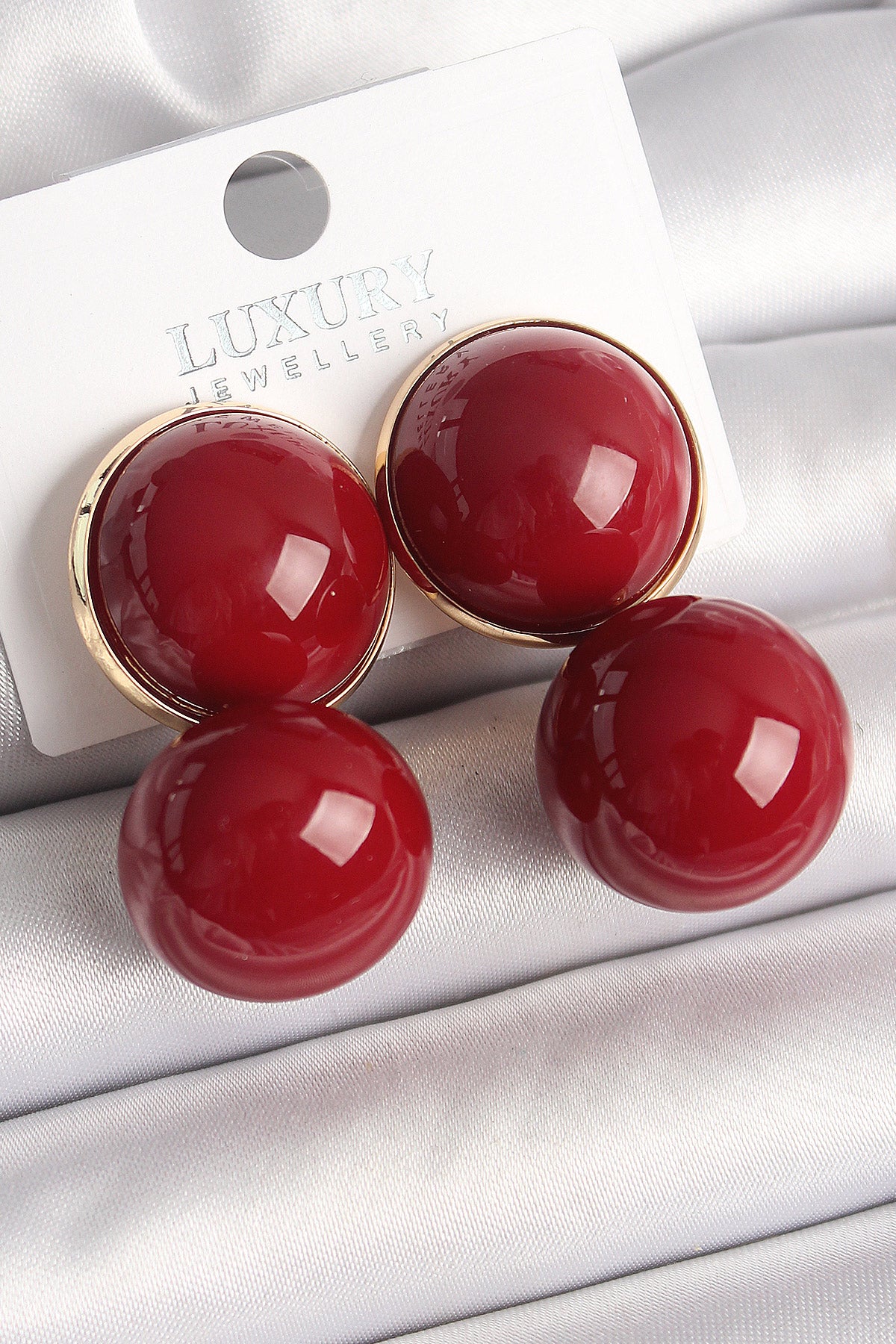 Pirinç Gold Renk Kırmızı Boncuk Model Kadın Küpe