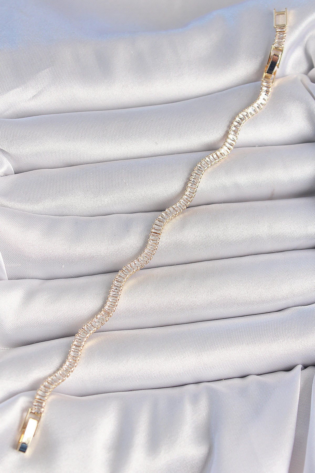 Pirinç Gold Renk Su Yolu Zirkon Taşlı Model Kadın Bileklik
