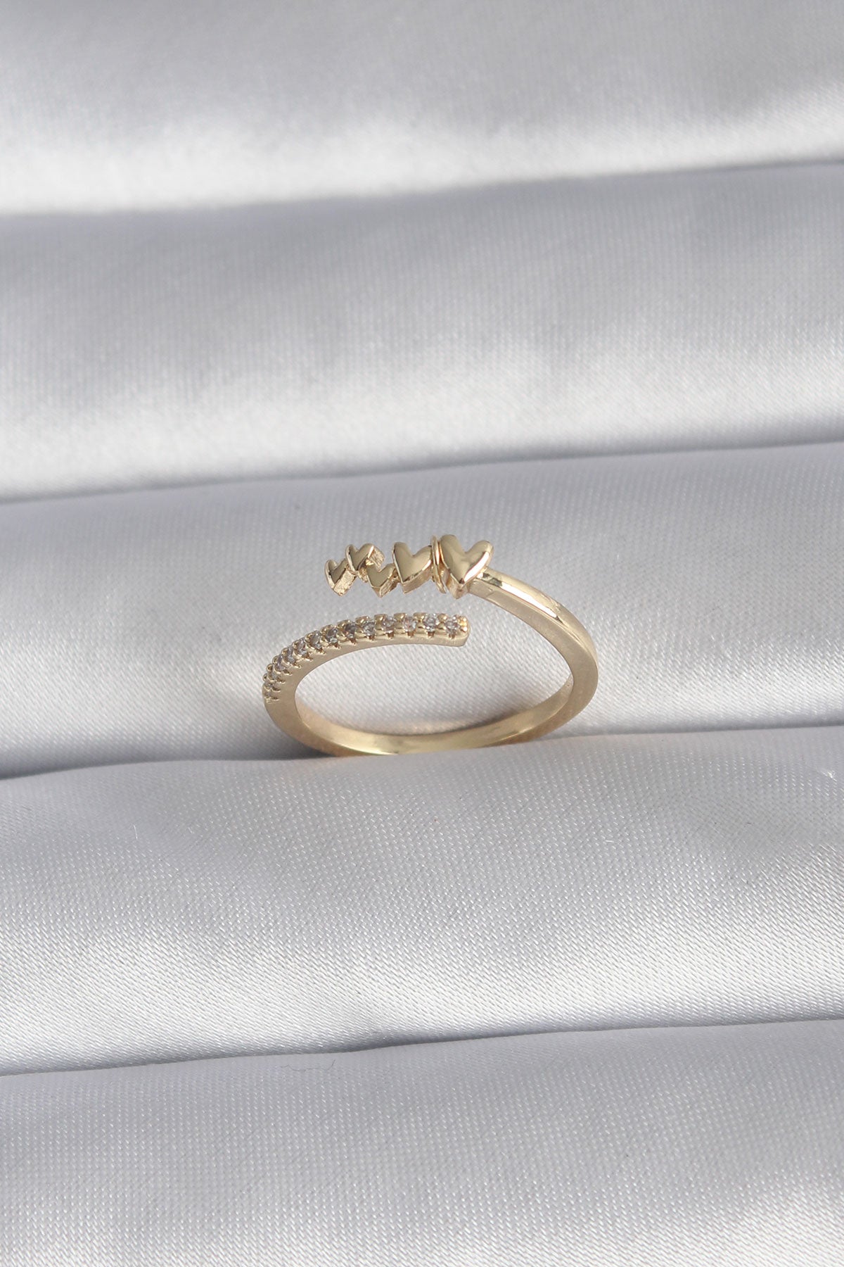 Pirinç Gold Renk Zirkon Taş Detay Kalp Model Kadın Yüzük