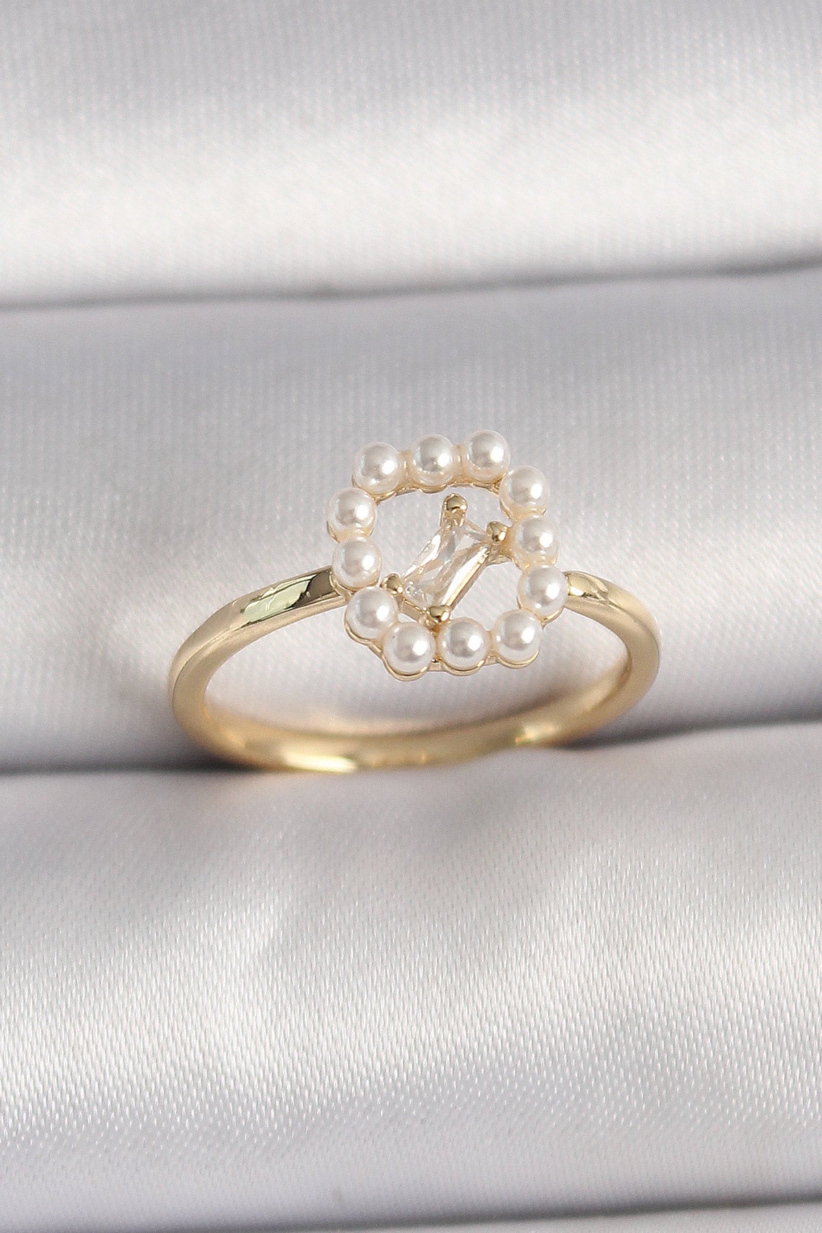 Pirinç Gold Renk Zirkon Taş Detaylı İncili Ayarlanabilir Yüzük