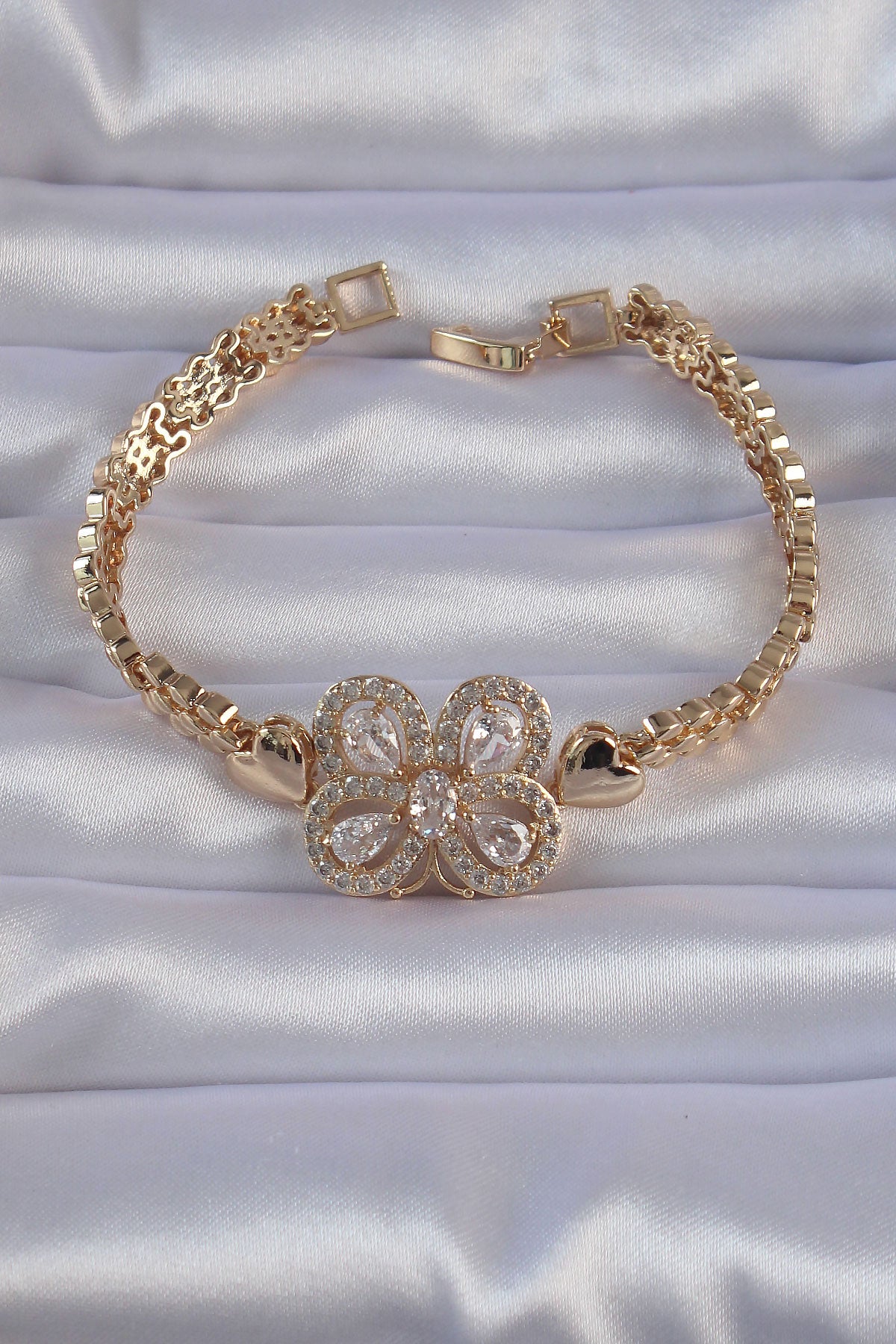 Pirinç Gold Renk Zirkon Taşlı Kelebek Figürlü Parçalı Model Bileklik