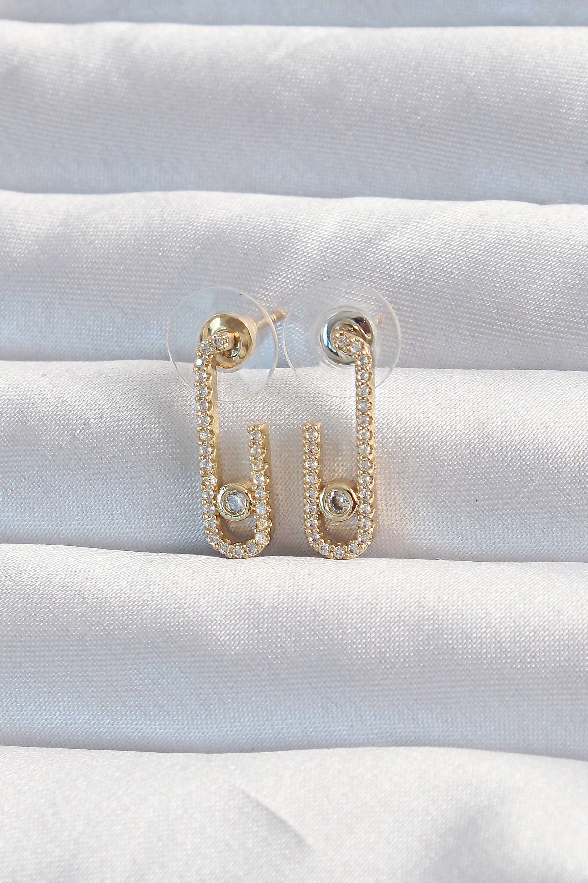 Pirinç Gold Renk Zirkon Taşlı Yarım Messika Küpe