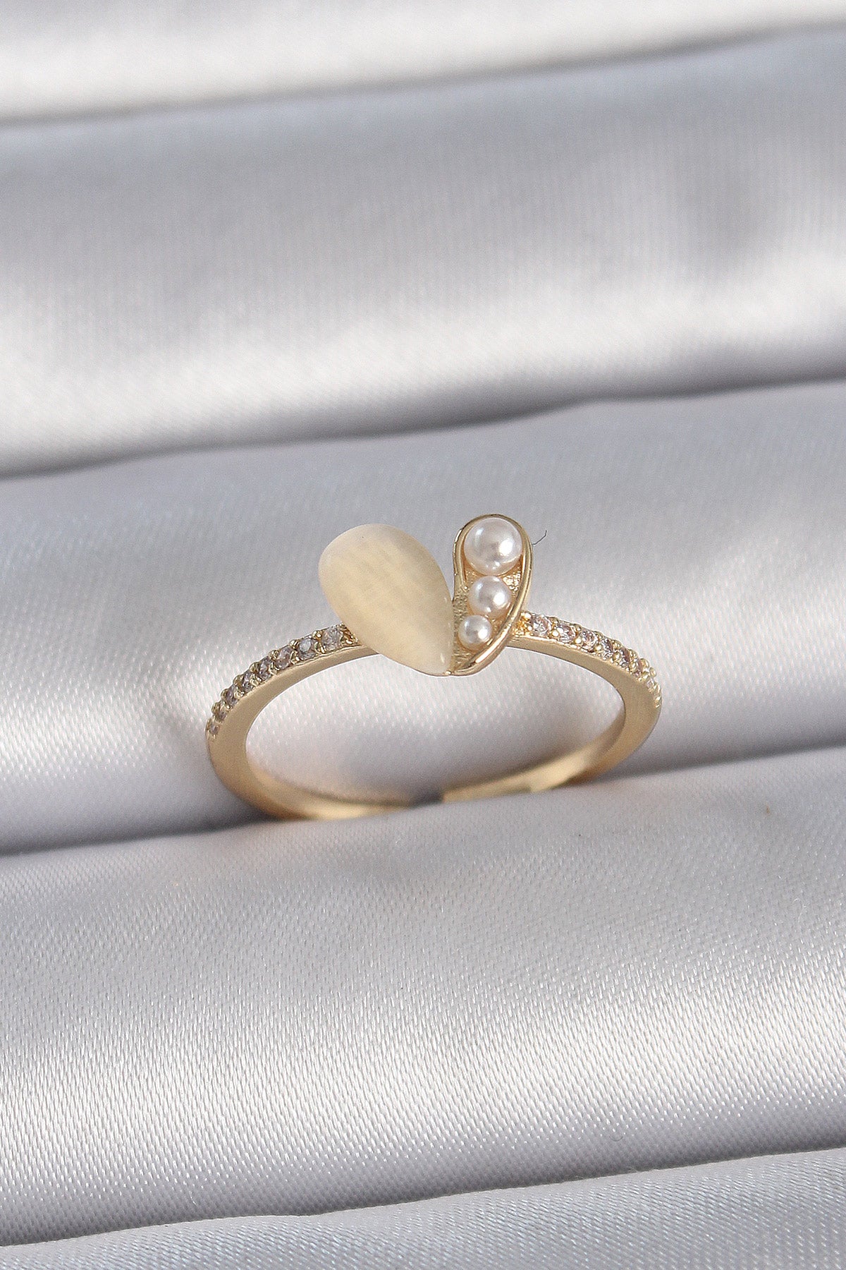 Pirinç Gümüş Renk Ayarlanabilir Zirkon Taşlı Beyaz Mineli Kalp Model Kadın Yüzük