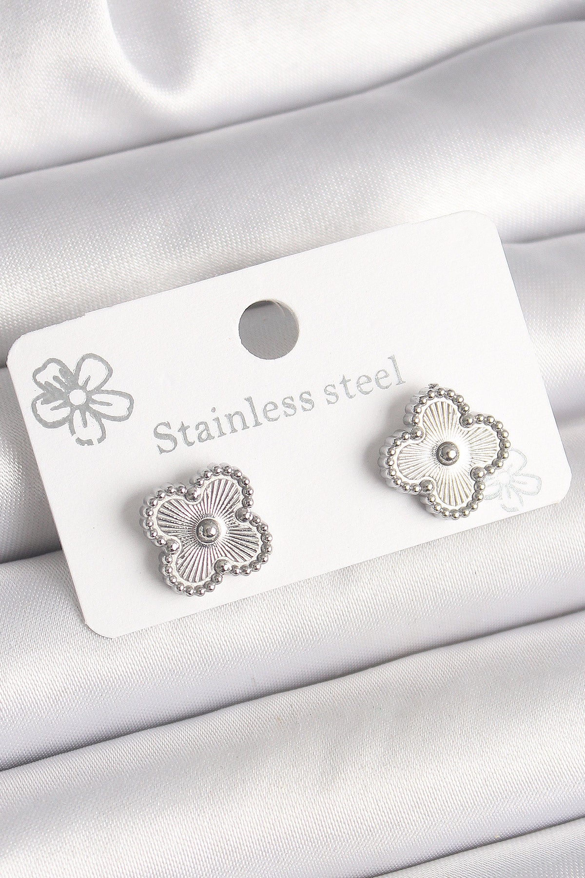 Pirinç Gümüş Renk İşlemeli Yonca Model Kadın Küpe