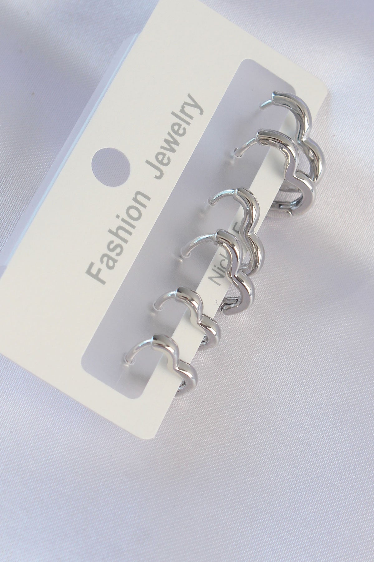 Pirinç Gümüş Renk Kalp Model Küpe Seti