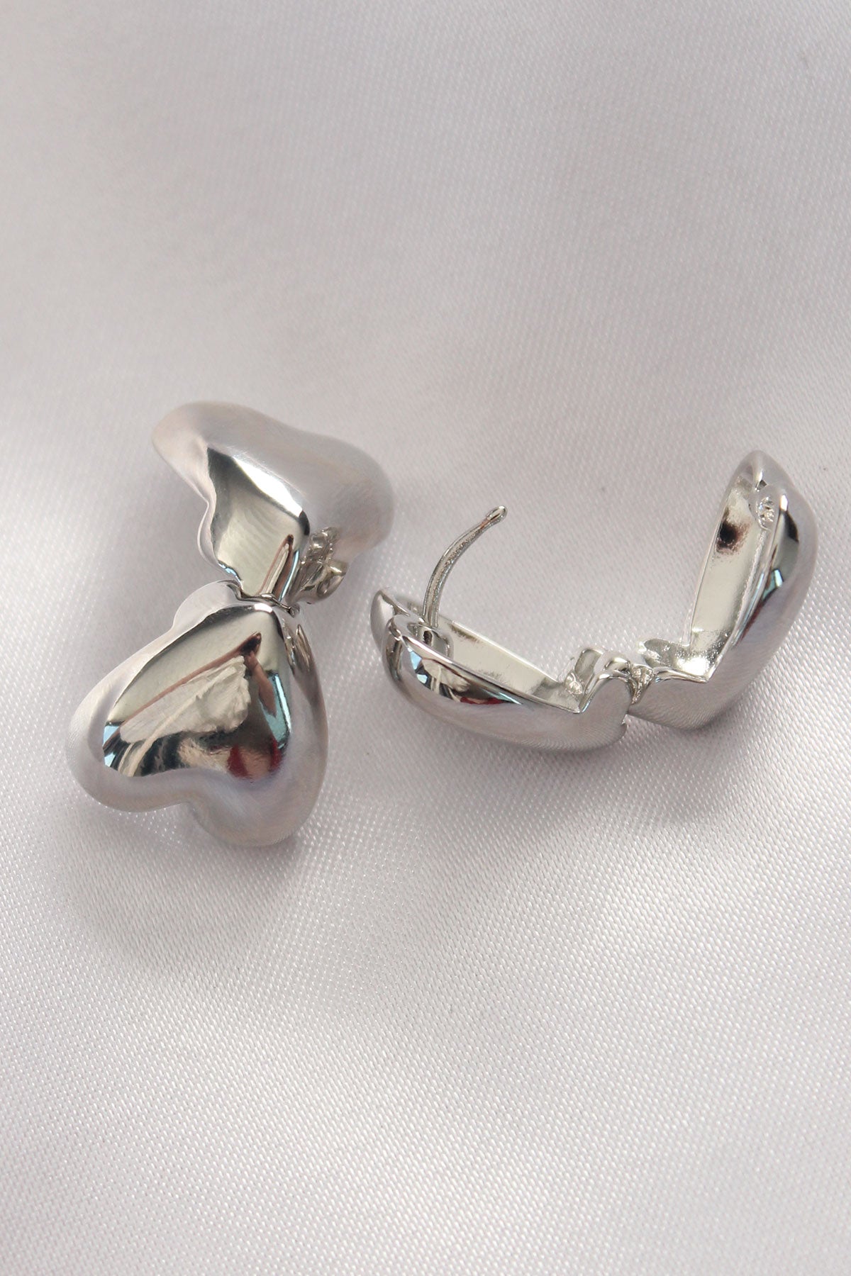 Pirinç Gümüş Renk Minimal Bombeli Kalp Küpe