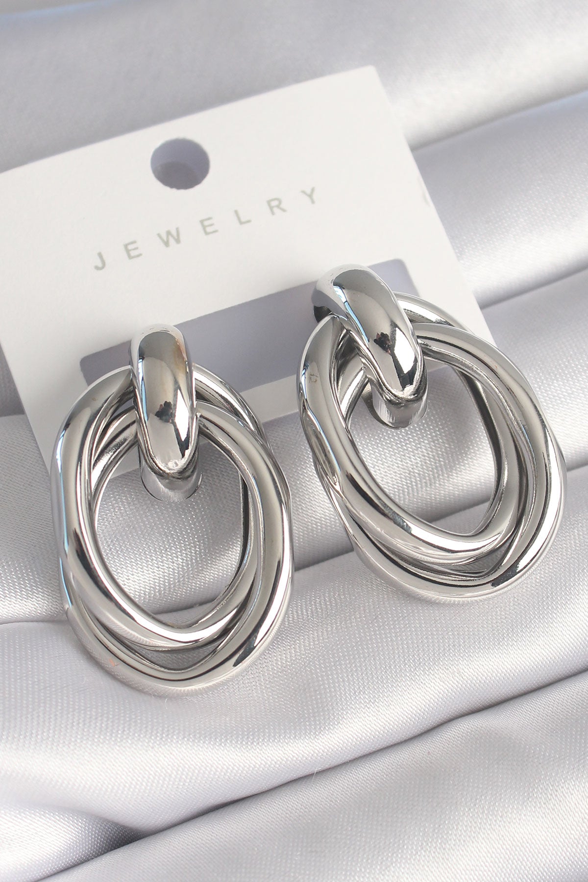 Pirinç Gümüş Renk Oval Sarmal Model Kadın Küpe
