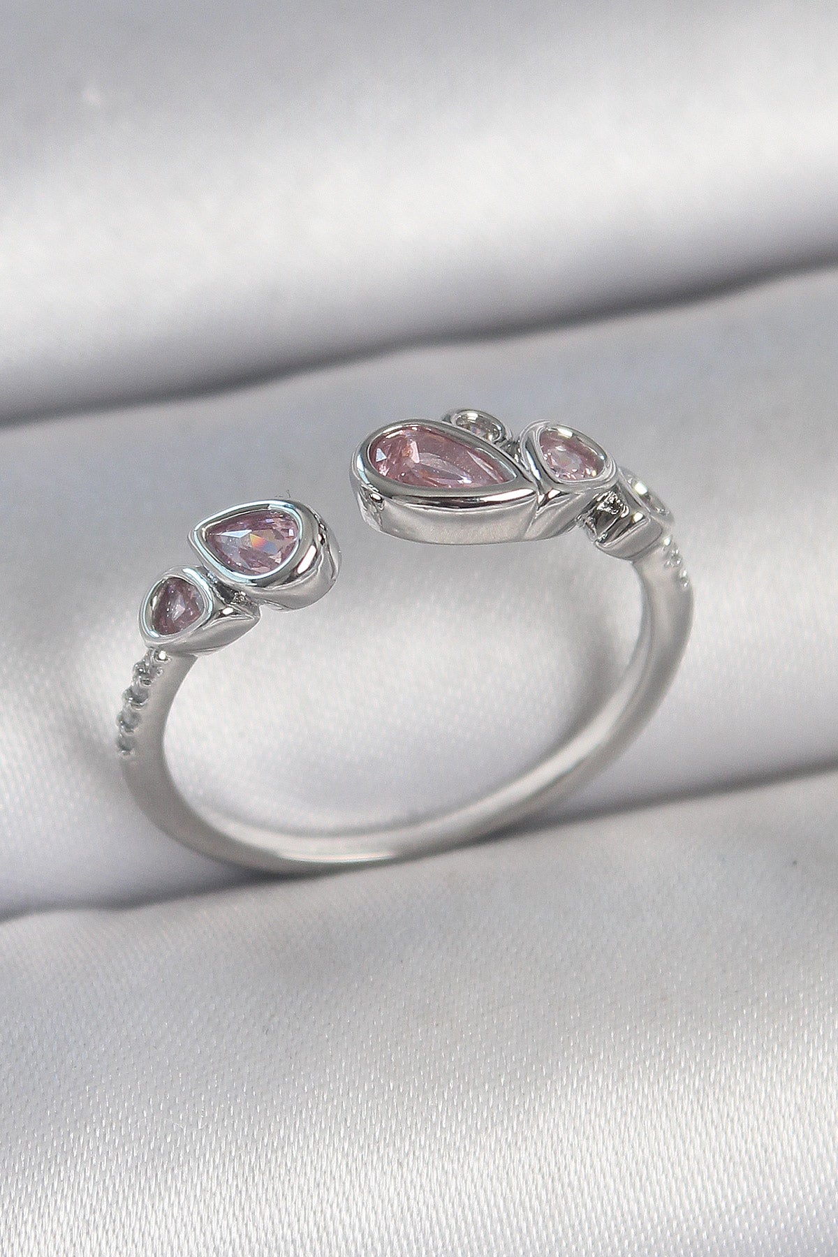 Pirinç Gümüş Renk Pembe Damla Zirkon Taşlı Ayarlanabilir Model Kadın Yüzük