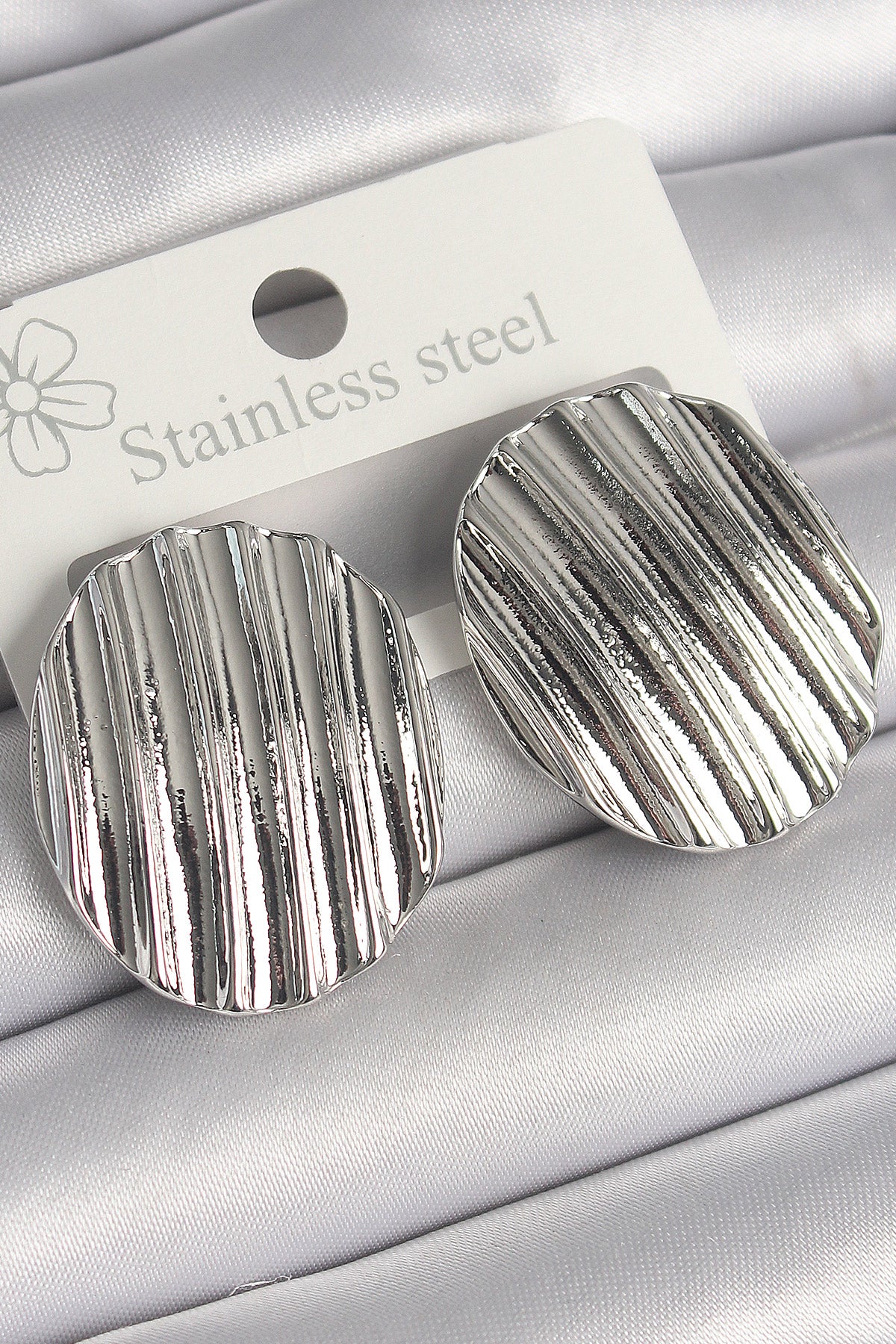Pirinç Gümüş Renk Sallantı İşlemeli Daire Plaka Model Kadın Küpe