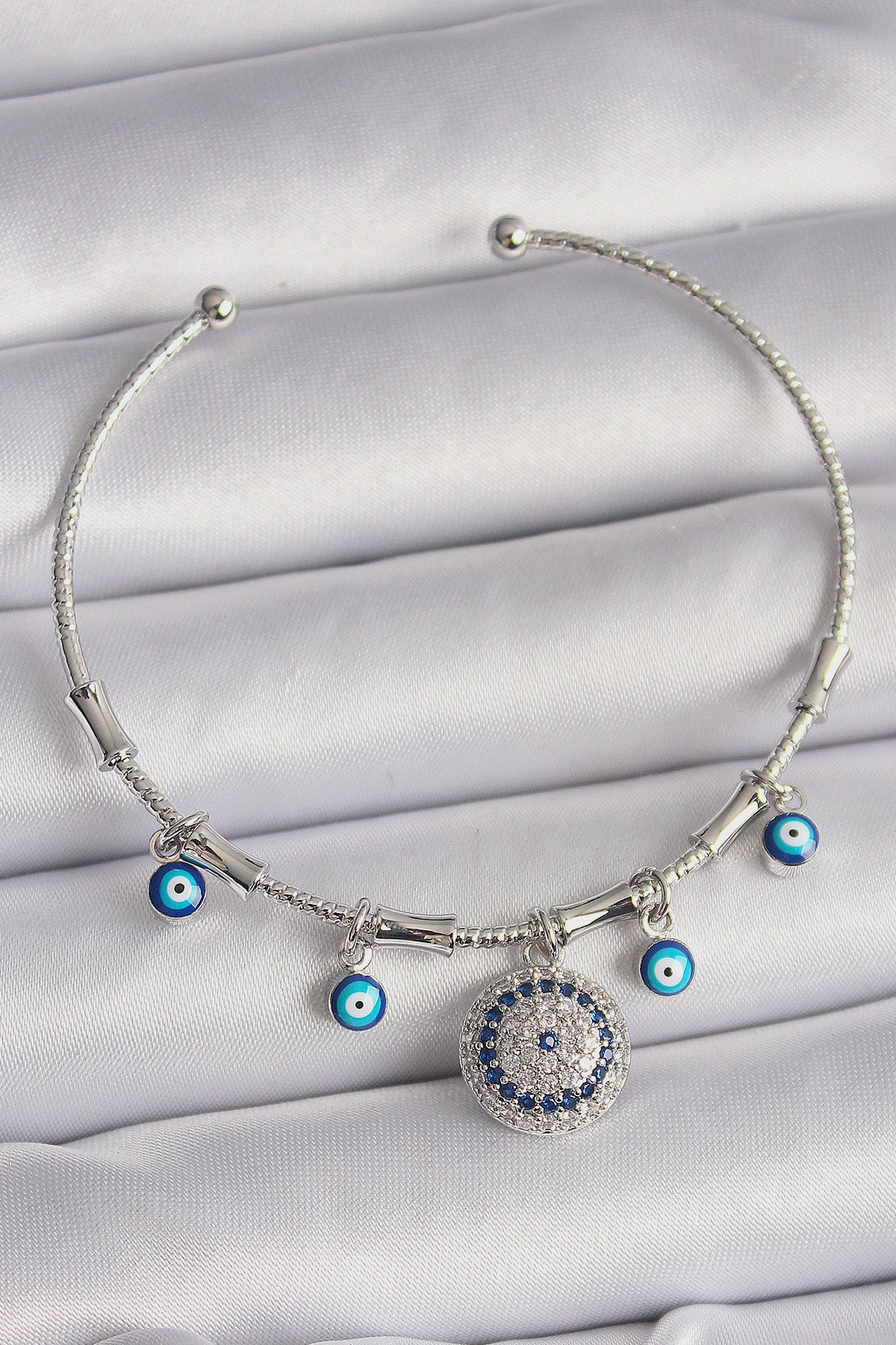 Pirinç Gümüş Renk Sallantı Zirkon Taşlı Nazar Boncuk Figür Charm Bileklik