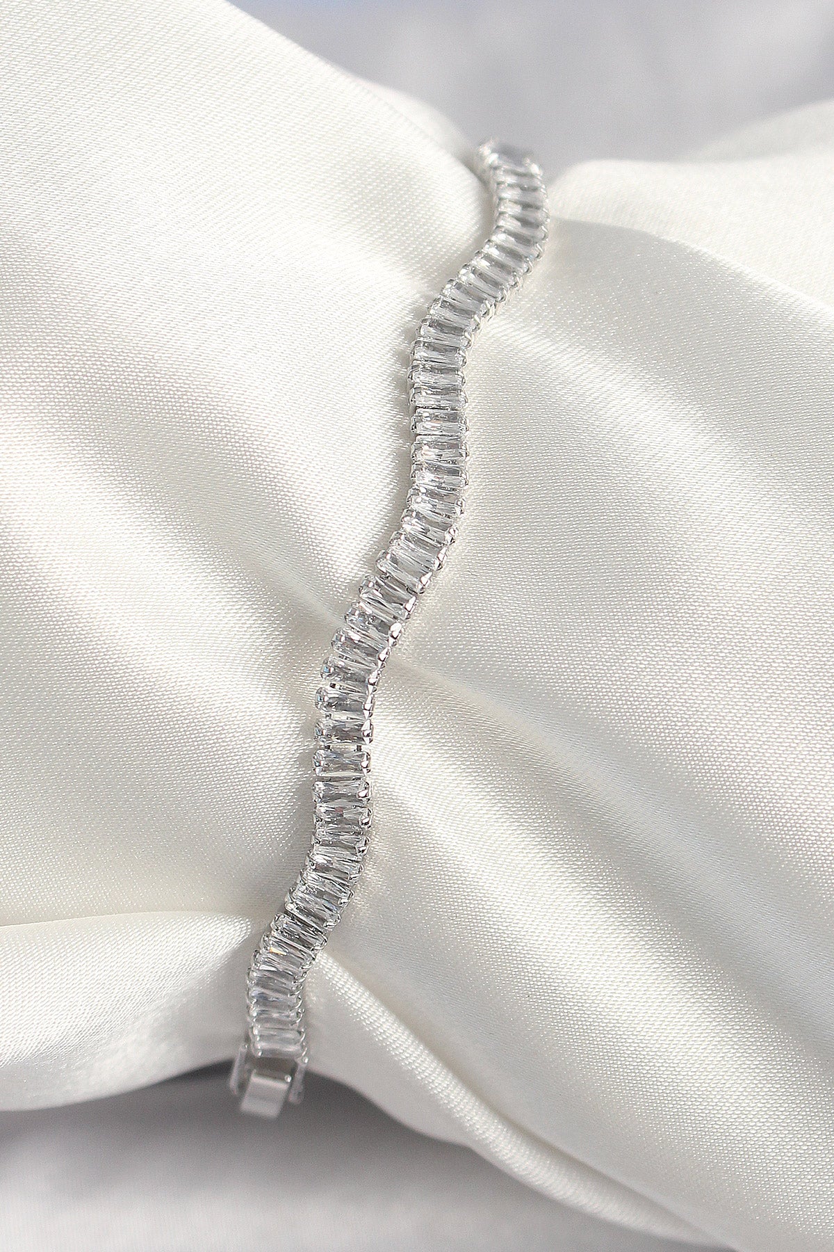 Pirinç Gümüş Renk Su Yolu Zirkon Taşlı Model Kadın Bileklik