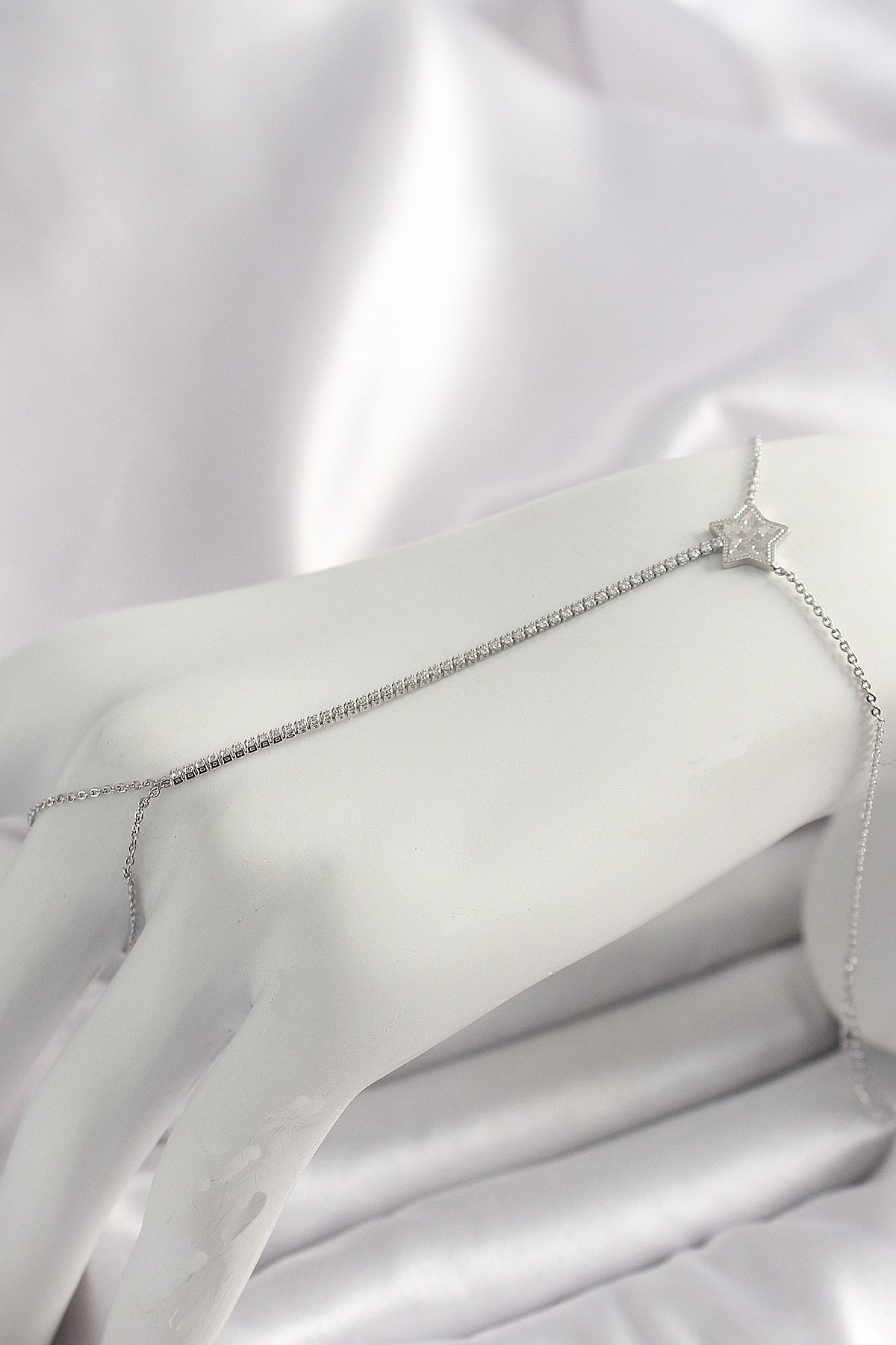 Pirinç Gümüş Renk Su Yolu Zirkon Taşlı Yıldız Model Kadın Şahmeran