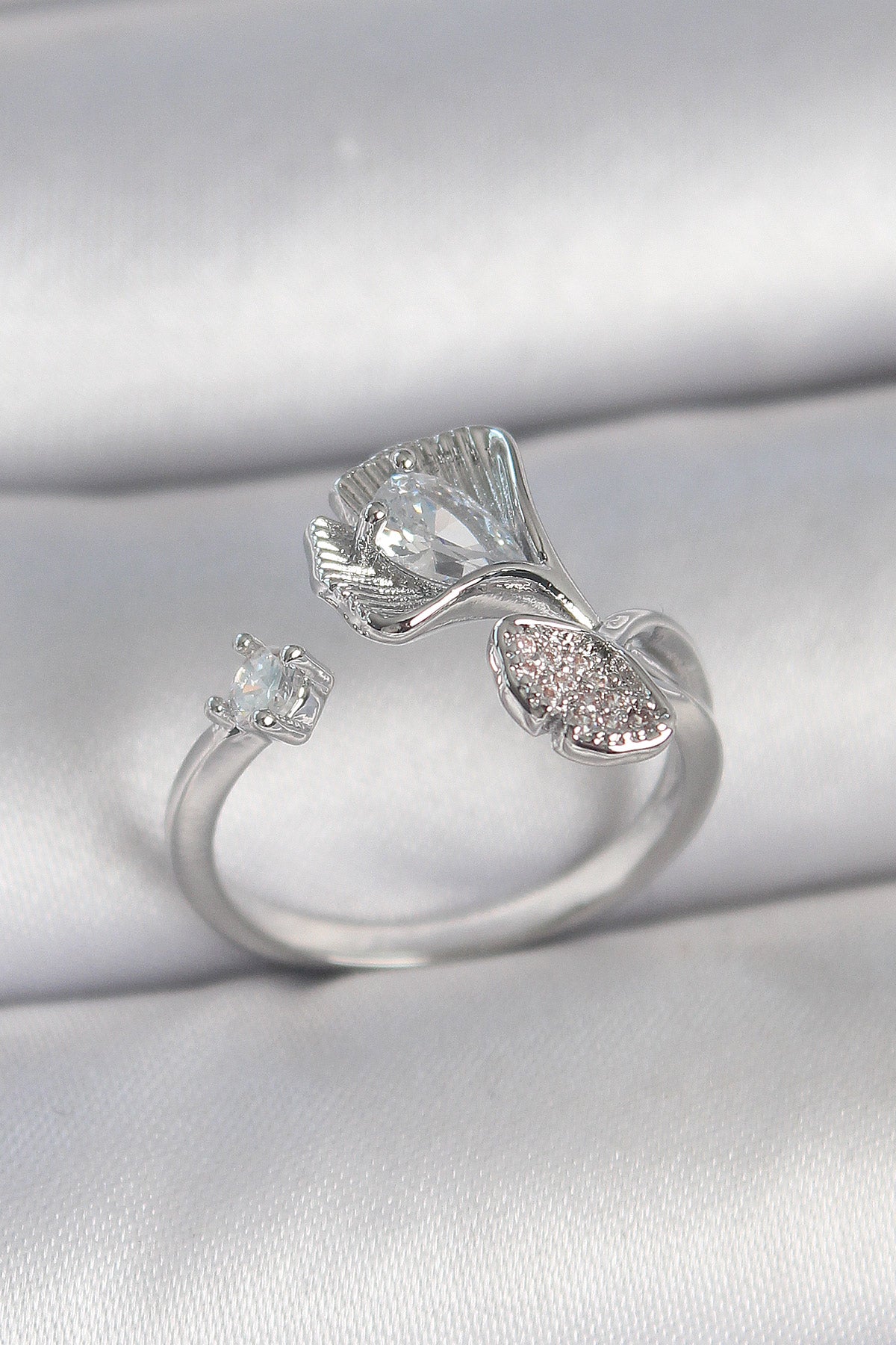 Pirinç Gümüş Renk Zirkon Taşlı Deniz Kabuğu Model Ayarlanabilir Kadın Yüzük