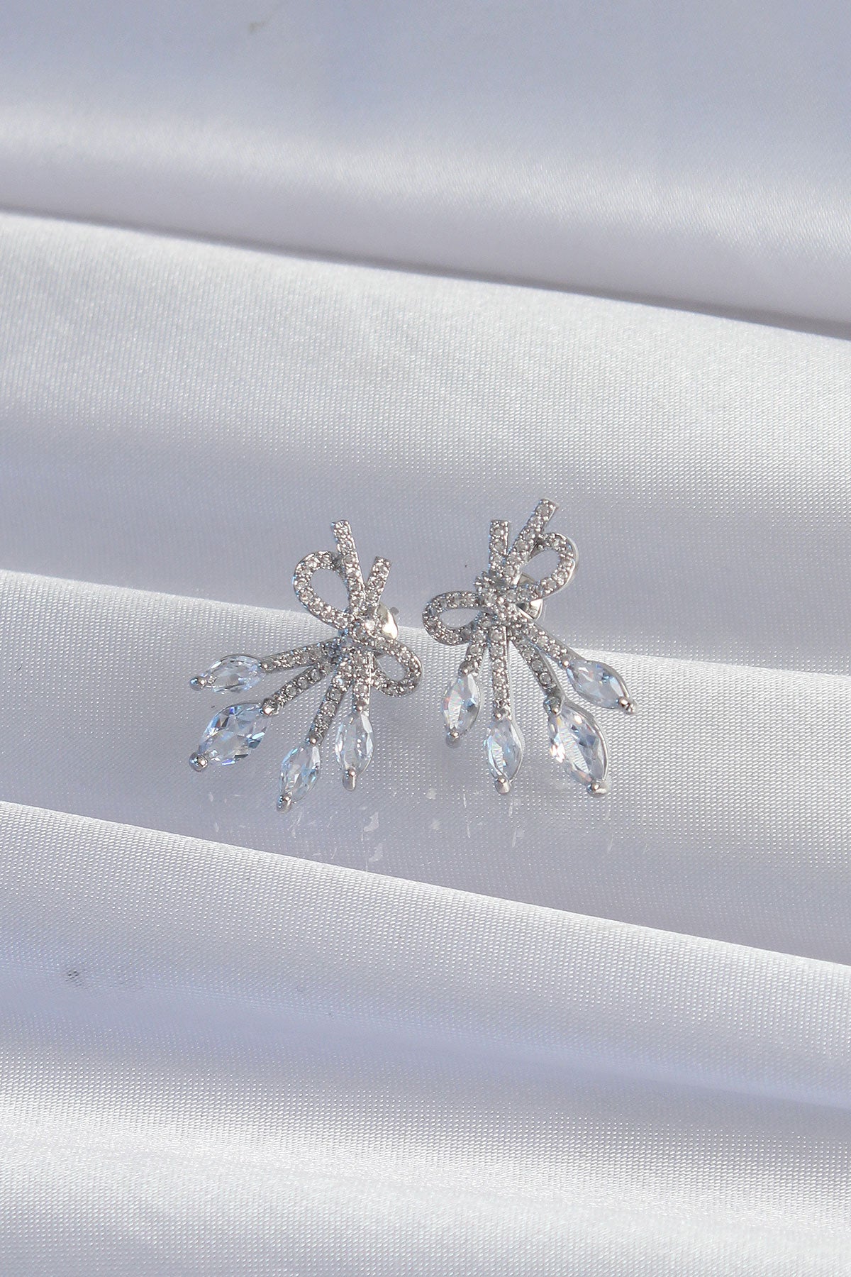 Pirinç Gümüş Renk Zirkon Taşlı Fiyonk Küpe