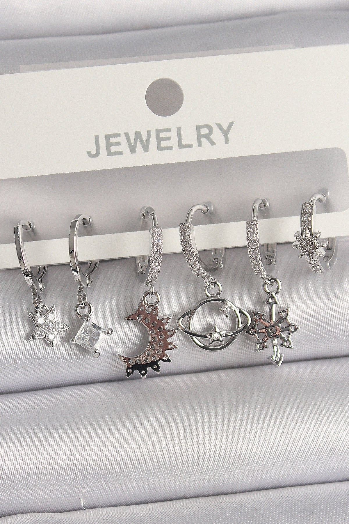 Pirinç Gümüş Renk Zirkon Taşlı Gezgen Model Kadın Küpe Seti