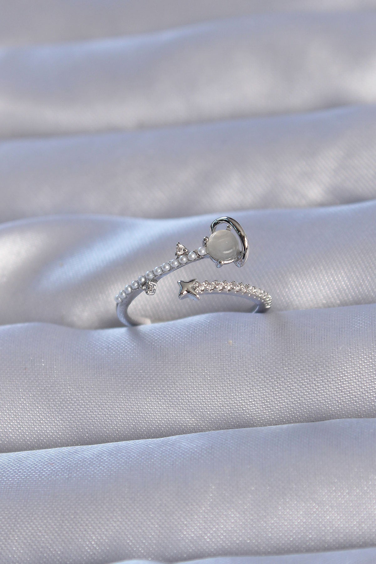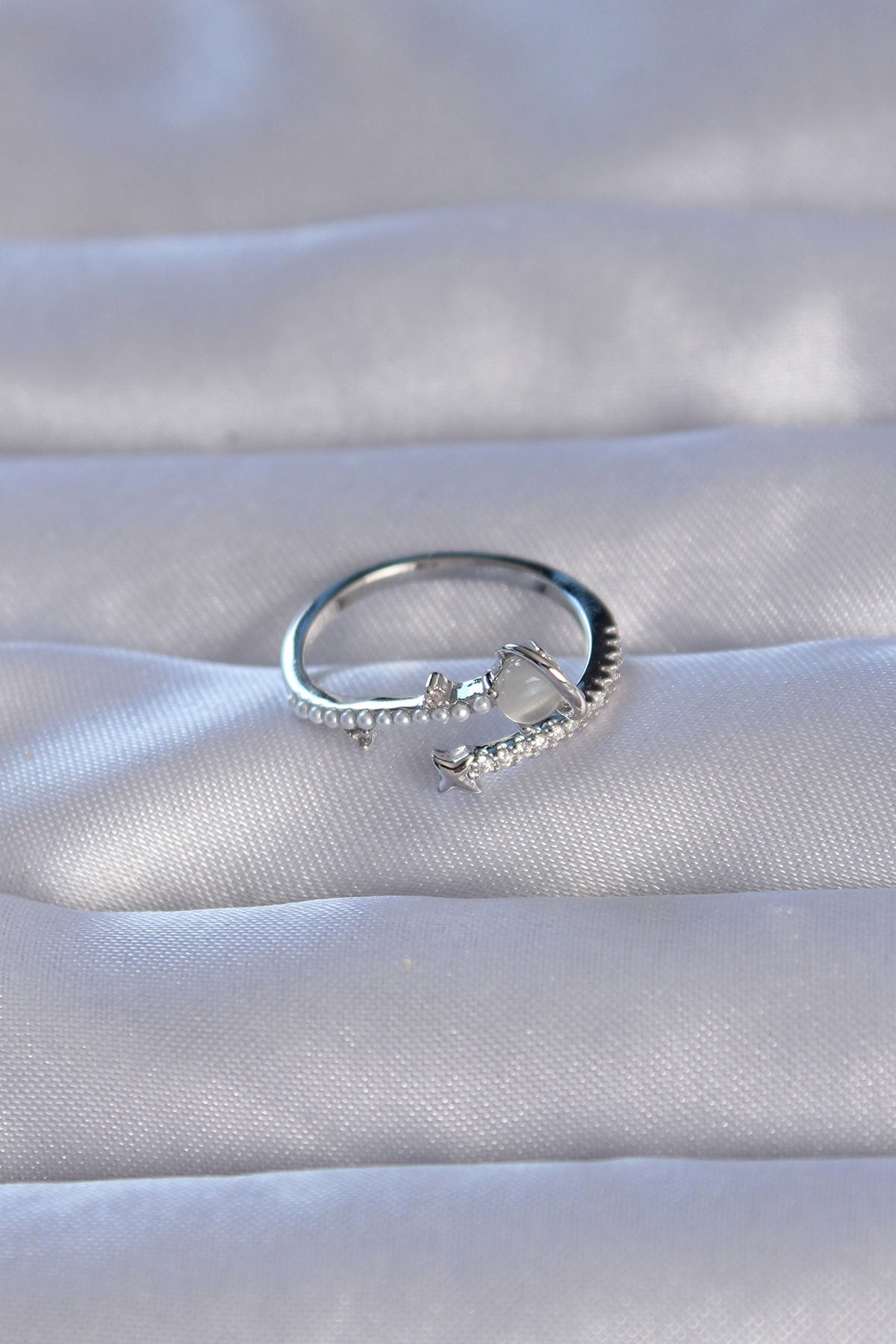 Pirinç Gümüş Renk Zirkon Taşlı İncili Satürn Model Ayarlanabilir Yüzük