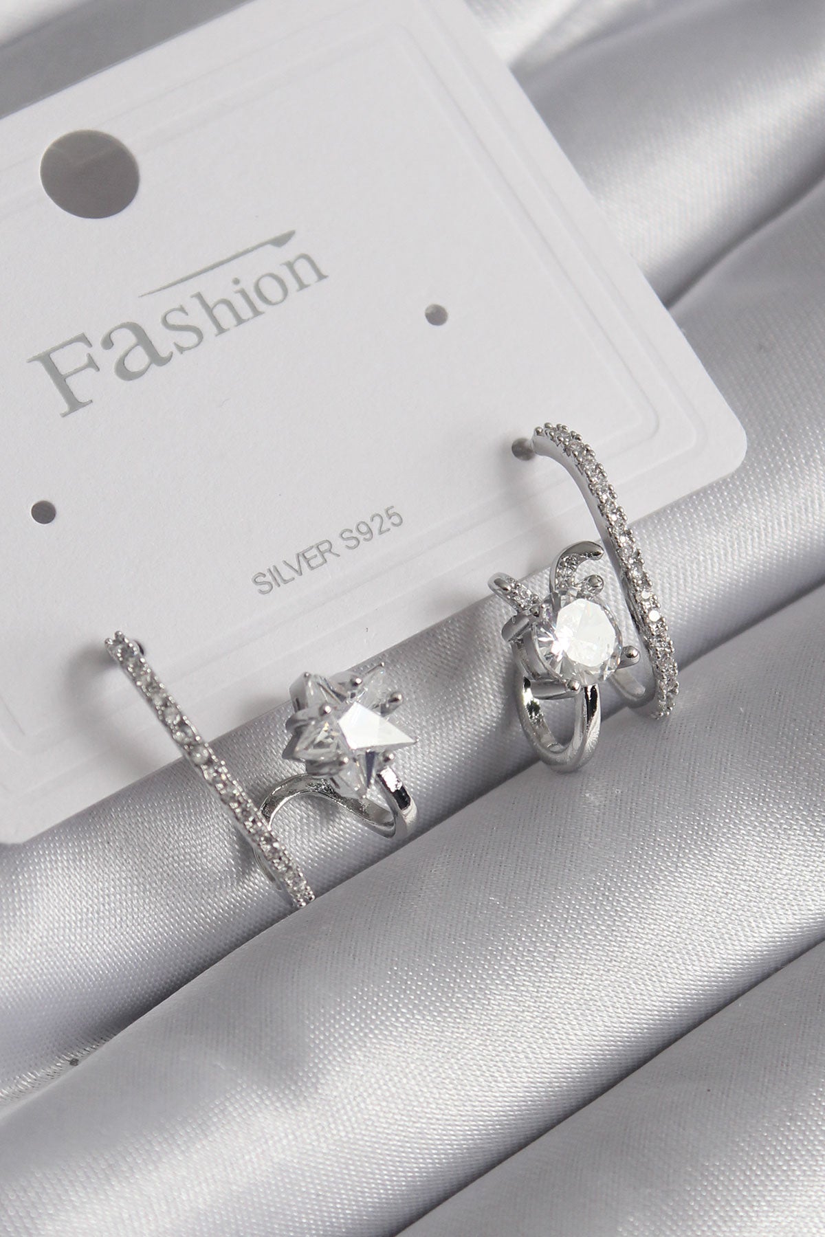 Pirinç Gümüş Renk Zirkon Taşlı Kadın Küpe