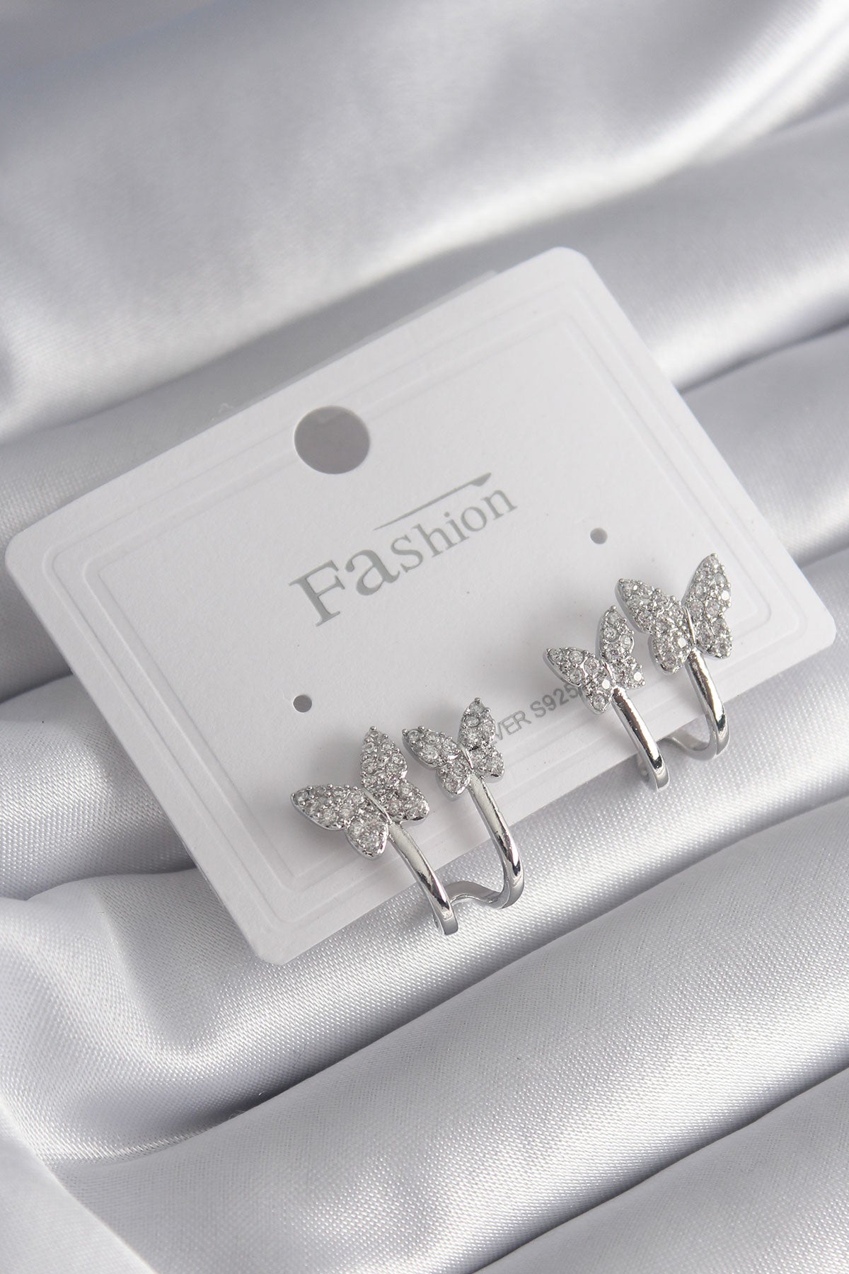 Pirinç Gümüş Renk Zirkon Taşlı Kelebek Model Kadın Küpe