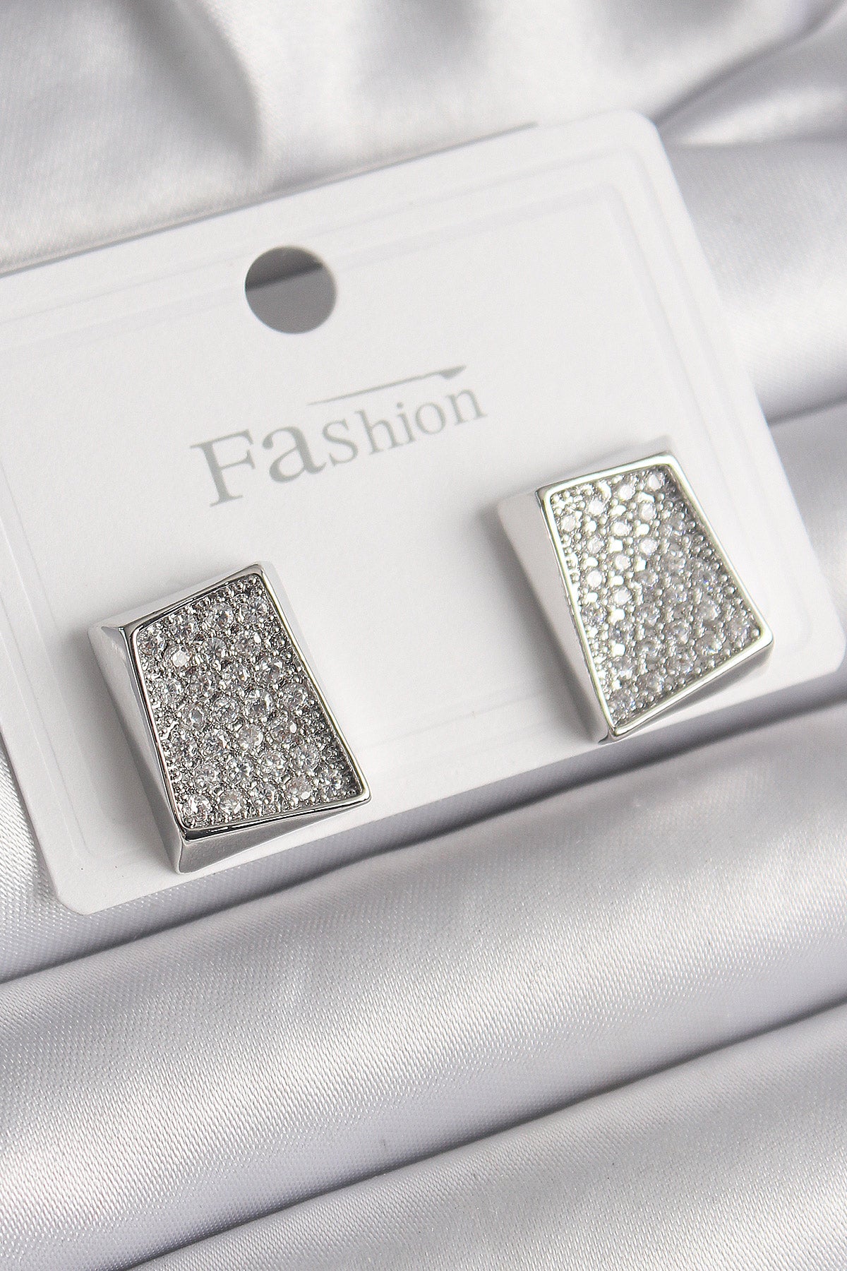 Pirinç Gümüş Renk Zirkon Taşlı Plaka Model Kadın Küpe