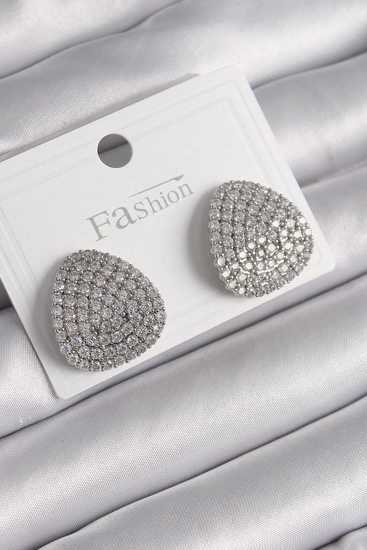 Pirinç Gümüş Renk Zirkon Taşlı Plaka Model Kadın Küpe