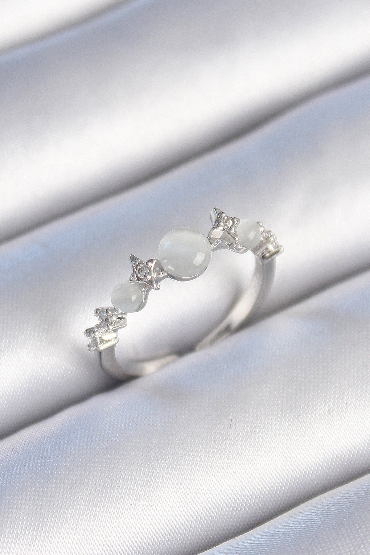 Pirinç Gümüş Renk Zirkon Taşlı Yıldız Detay Beyaz Mineli Kadın Yüzük