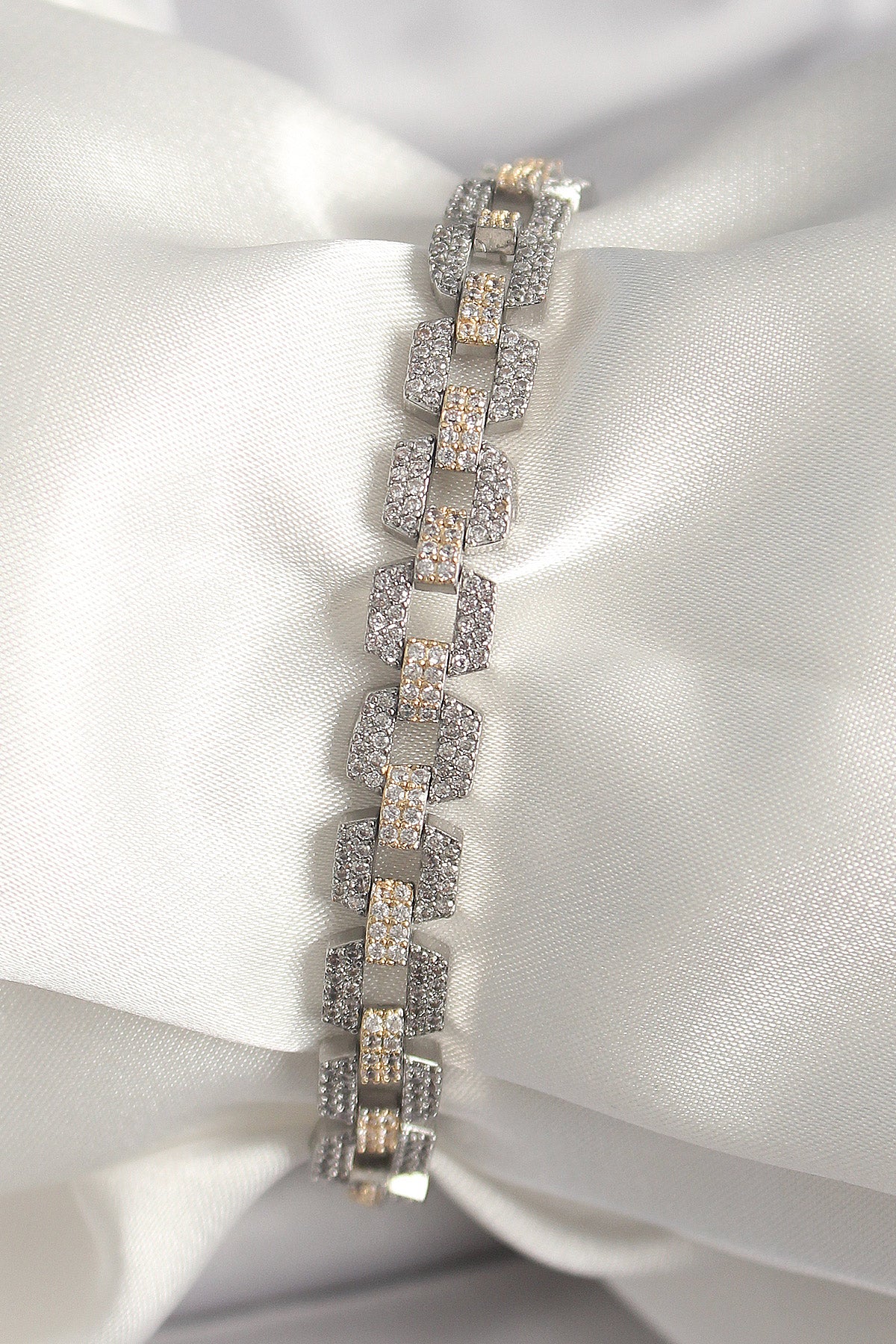 Pirinç Mix Renk Zirkon Taşlı Zincir Model VIP Seri Kadın Bileklik