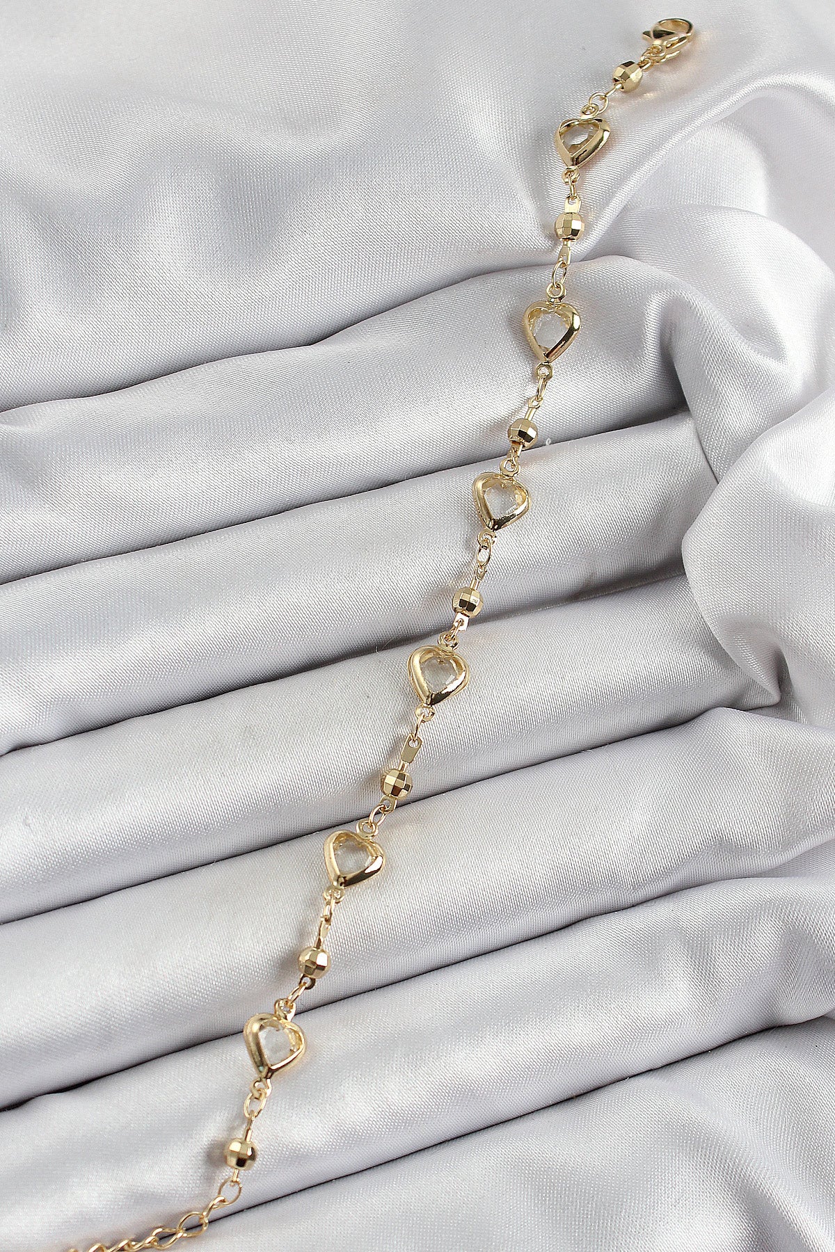 Pirinç Şeffaf Kalp Model Gold Renk Zirkon Taşlı Kadın Bileklik