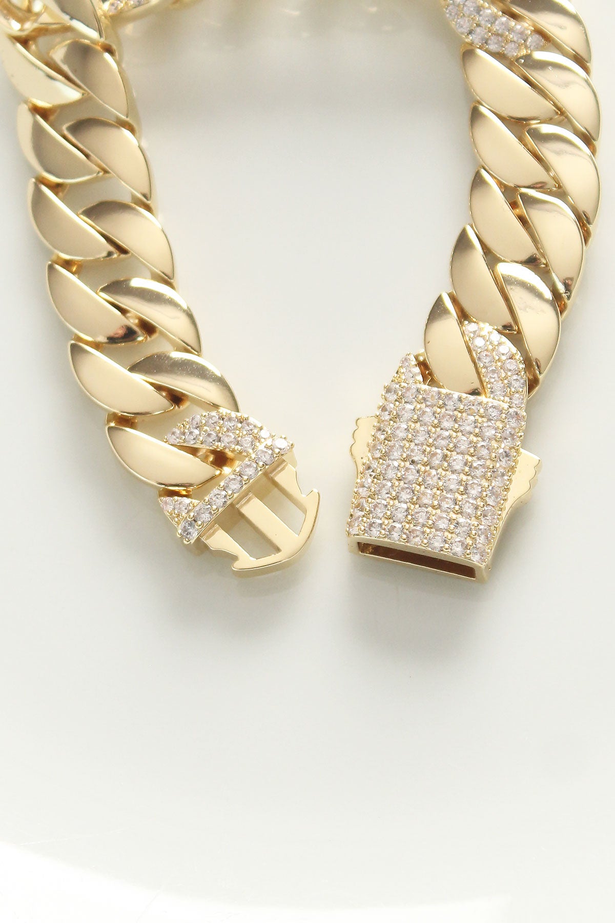 Vip Seri Pirinç Ortası Zirkon Taşlı Gold Renk Gurmet Bileklik